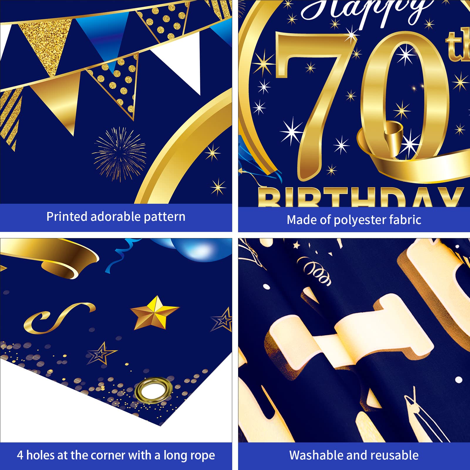 [You will get] - Blue gold happy 70th birthday banner decorations, 72.8 X 43.3 inches, enough to decorate your 70th birthday party.