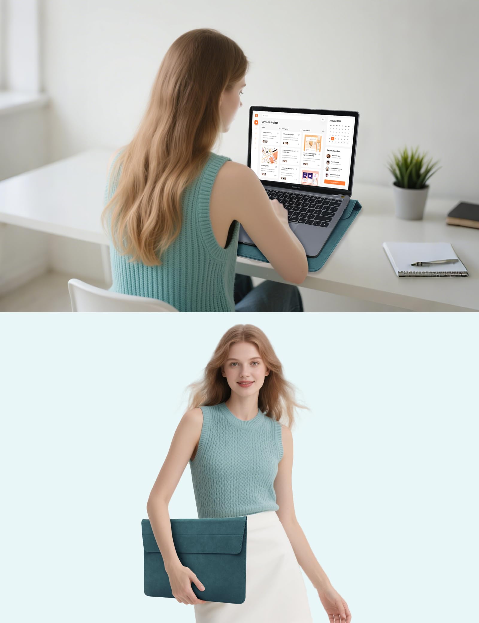 Premium Quality and Multi-purpose: The outermost fabric is faux suede leather, which is resistant to wear and tear, aging, water and dust. The middle layer is embedded with a soft microfiber felt to provide shock absorption cushioning for your laptop, preventing it from being damaged by accidental bumps or drops. The inner layer is a fine microfiber fabric that protects your laptop from scratches when you put it in/out. It can also be used as a temporary laptop pad/mouse pad