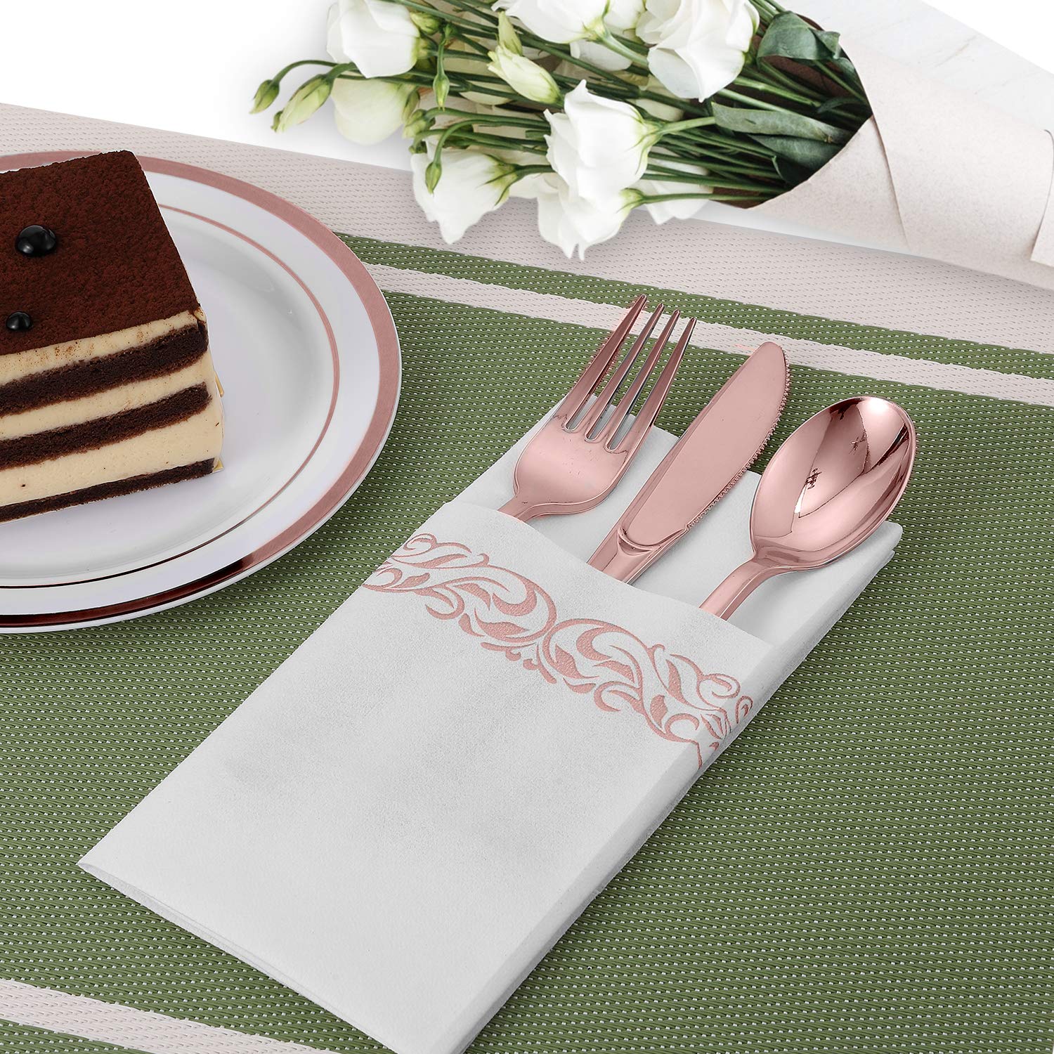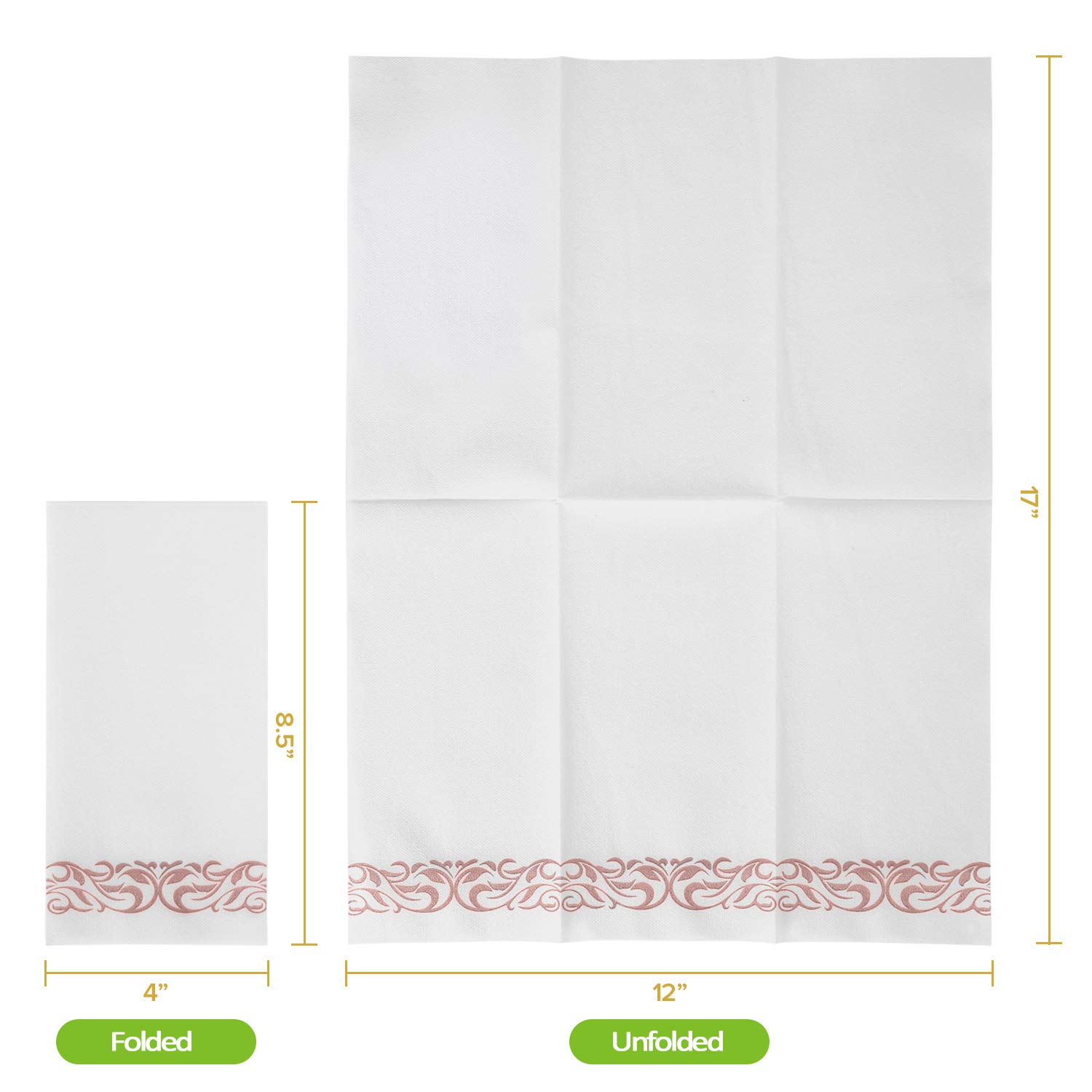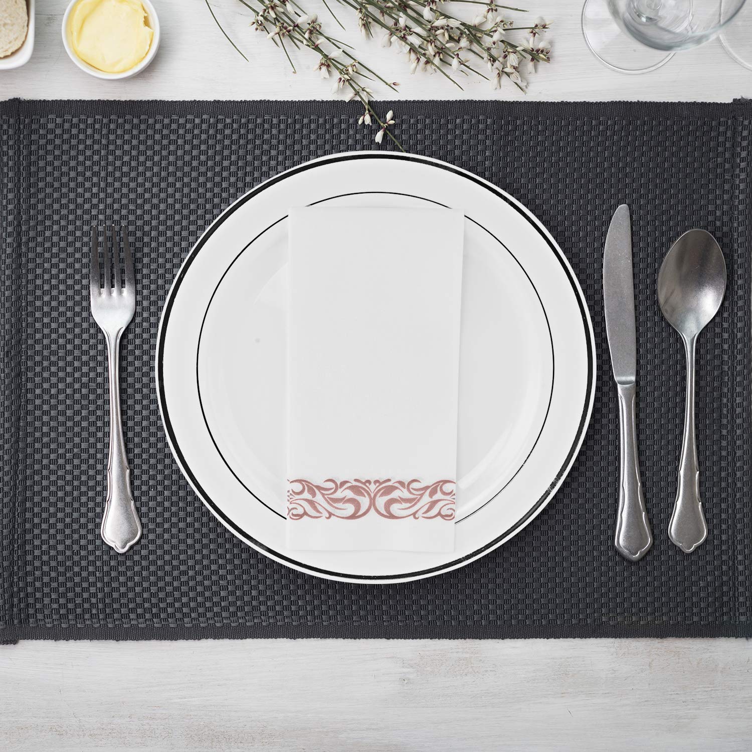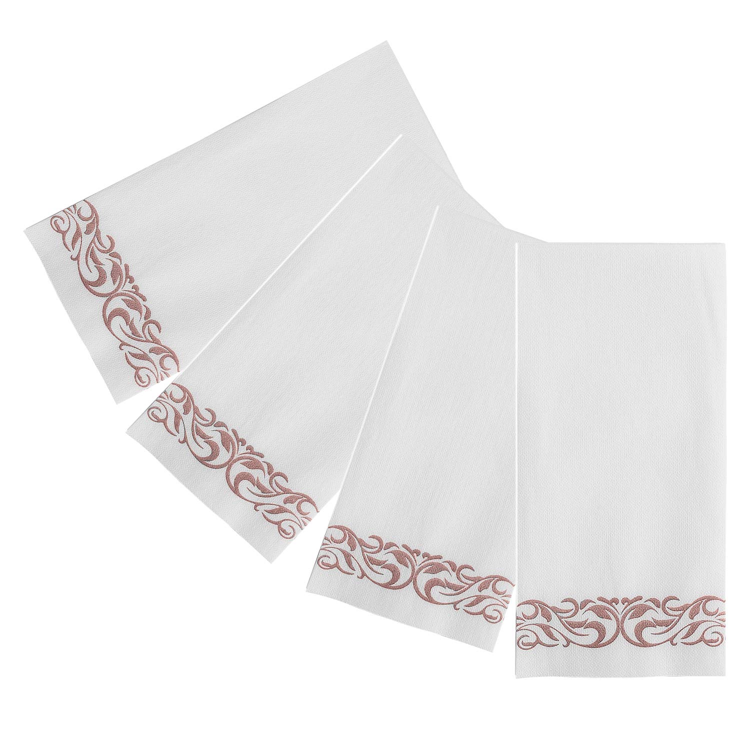 The white napkins are printed with delicate rose gold trim decorative design, adding an elegant and stylish atmosphere to your party, dining table, or bedroom. Linen-feel, extra durable paper napkins offer guests top-notch comfort and luxury
