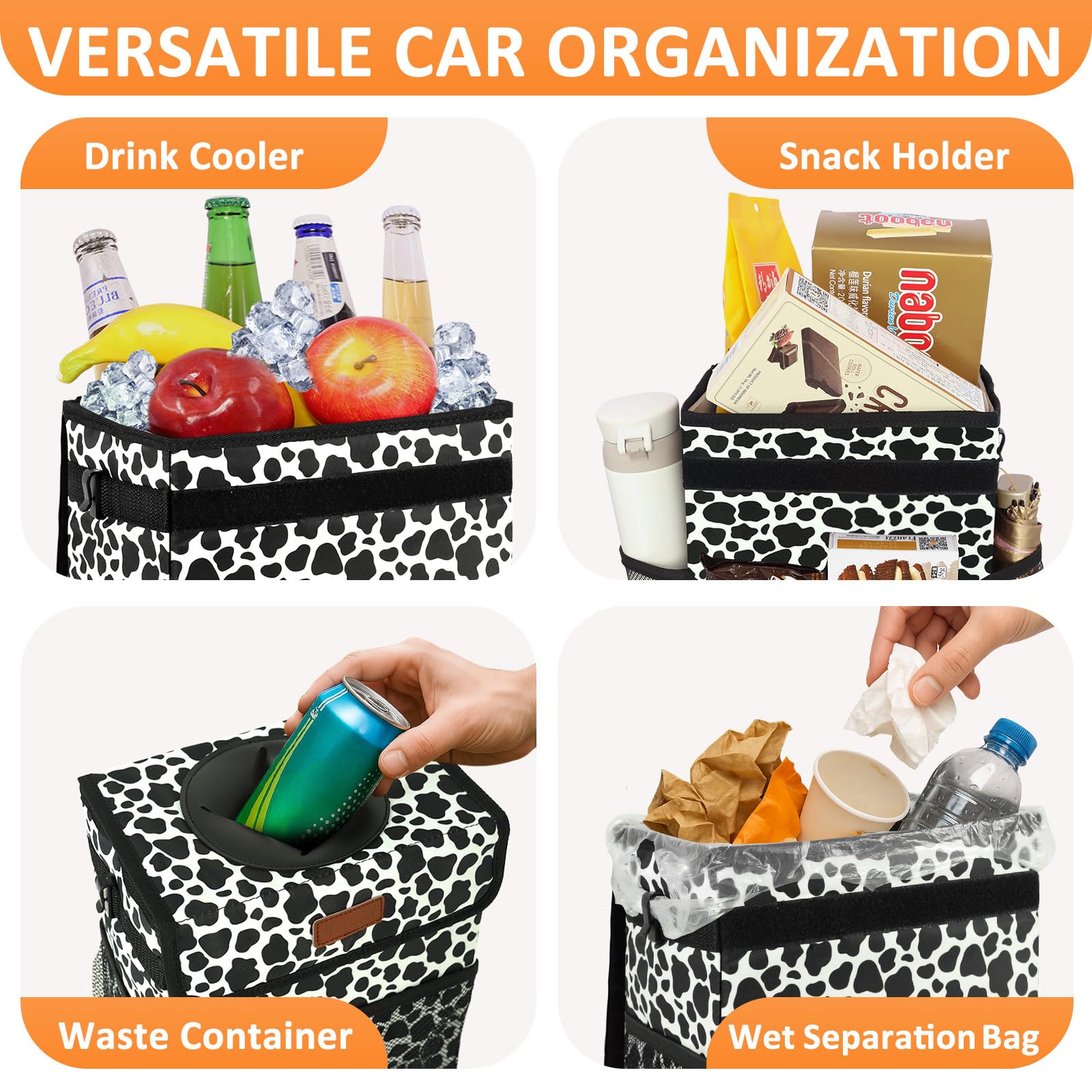 Wide Compatibility: An thoughtful solution for people who have the need for car neat and car interior storage; Perfectly fits varieties of types of vehicles including sedans, SUVs, RVs, trucks, vans, minivans, boats, campers, taxis, buses, etc; Auto trash can for car is very sturdy , has a long service life, and is very convenient to carry; The car trash can for the back seat is foldable, when you don't need it, just fold it up without taking up any space