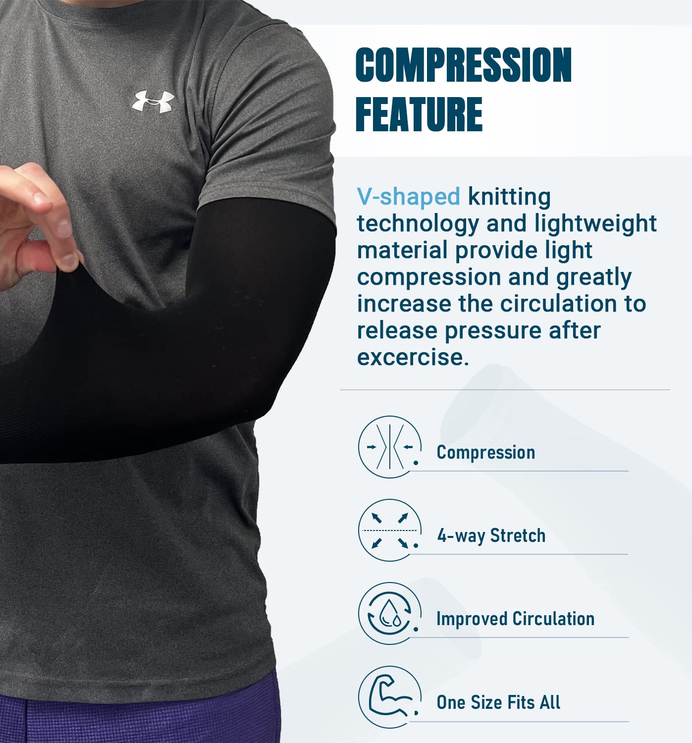Breathable and Comfortable Fabric - Premium breathable fabric with seamless sewing technique snugs lightly on your arms like a second set of skin, soft and lightweight. V-shaped knitting technology on lower arms provides light compression and greatly increases the circulation to release pressure during exercise.