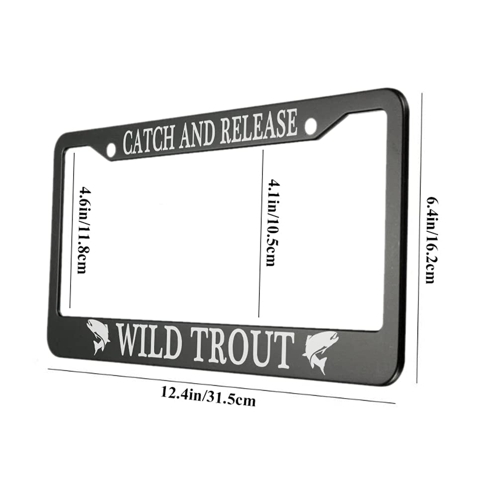 Our Catch and Releas Wild Trout Aluminum Alloy License Plate Frame White Fish Pattern Black Applicable to US Standard Car Metal Car Tag Frame(1 PACK) We fab these License plate frames out of an outdoor durable aluminum alloy composite material, to protect the image from fading and protect the image from road debris, extending the life of the graphic Durable aluminum frame with aluminum coating. This license plate holder is the perfect accessory for your vehicle. Please check the product image for frame size. Please measure your license plate to make sure the upper or bottom lip of the frame won't cover the state name. Specifications: Frame size: 12.4" X 6.4" Frame material: thin aluminum sheet metal Package Includes: 1 x License Plate Frame Tips: Sold individually (not a pair). Get one for the front and back of your vehicle. After-sales Service: If you have any questions, please contact us through our shop. We will reply within 24 hours.