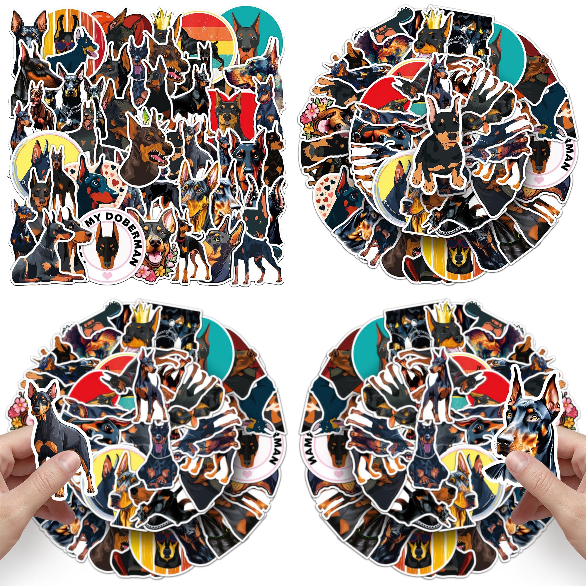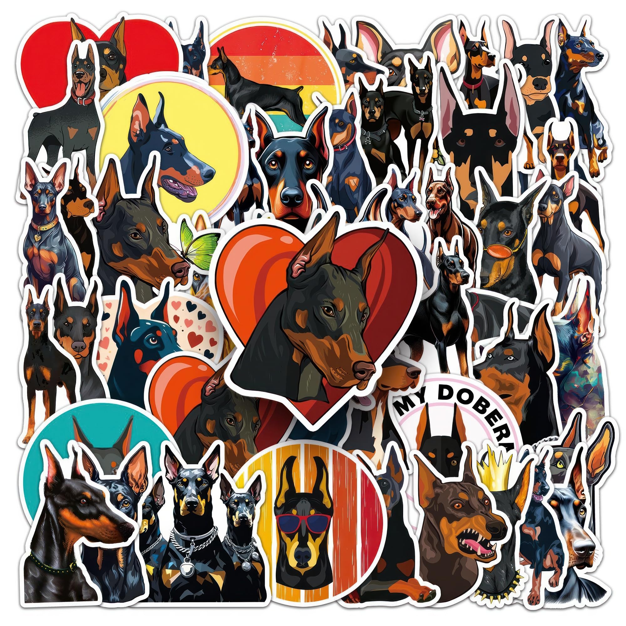 【Doberman Sticker】This series of stickers including 50 pcs unique from 2.1 up to 3.3 inch are specially designed for Pinscher.Unique Personalized Pattern perfect for present!