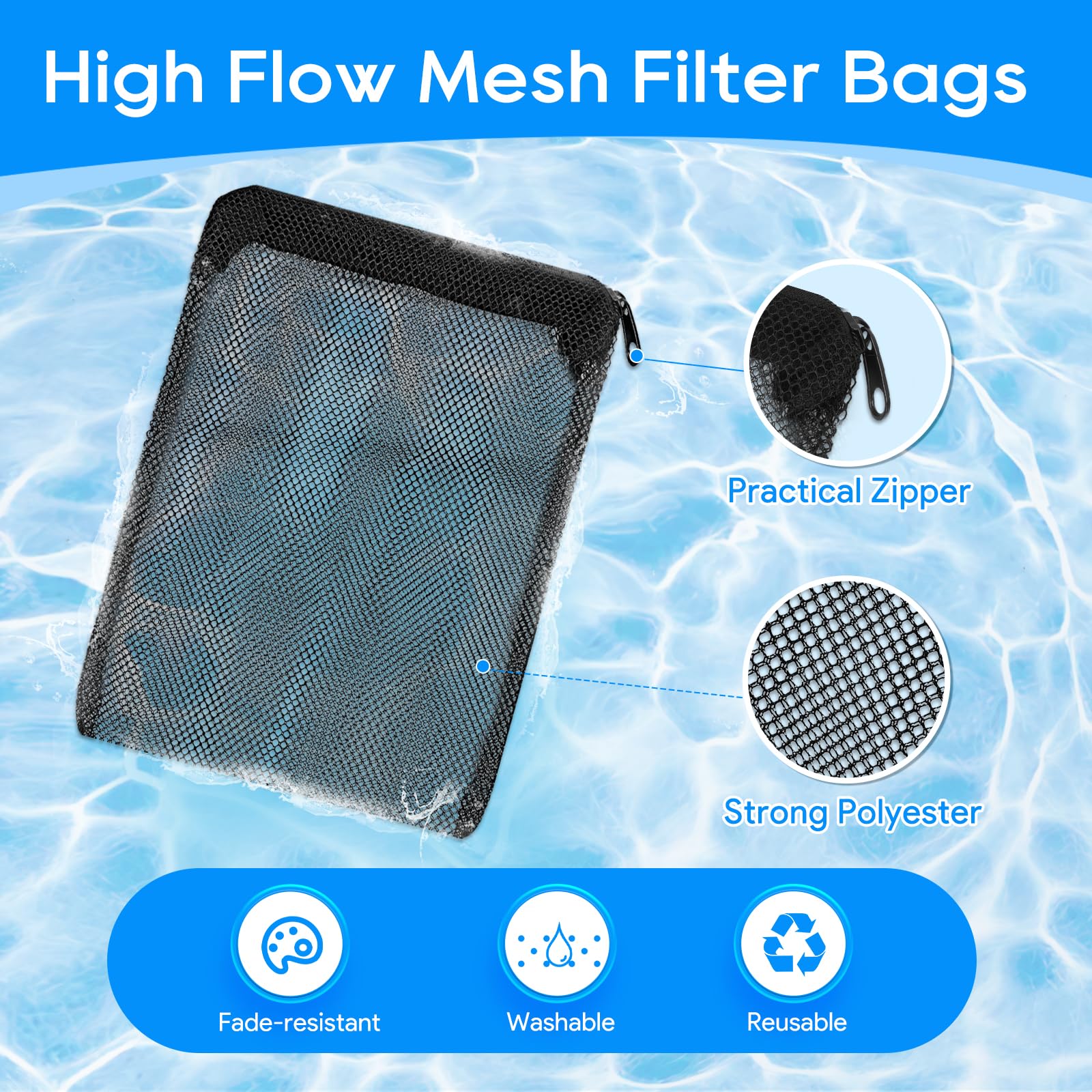 SAFE BAG CLOSURE: Our all-mesh filter bags with the zipper is not as easy to loosen as drawstring bag. Can be CLOSE TIGHT to prevent loose media from potentially causing damage to your water pump power filter's motor or being inadvertently eaten by fish