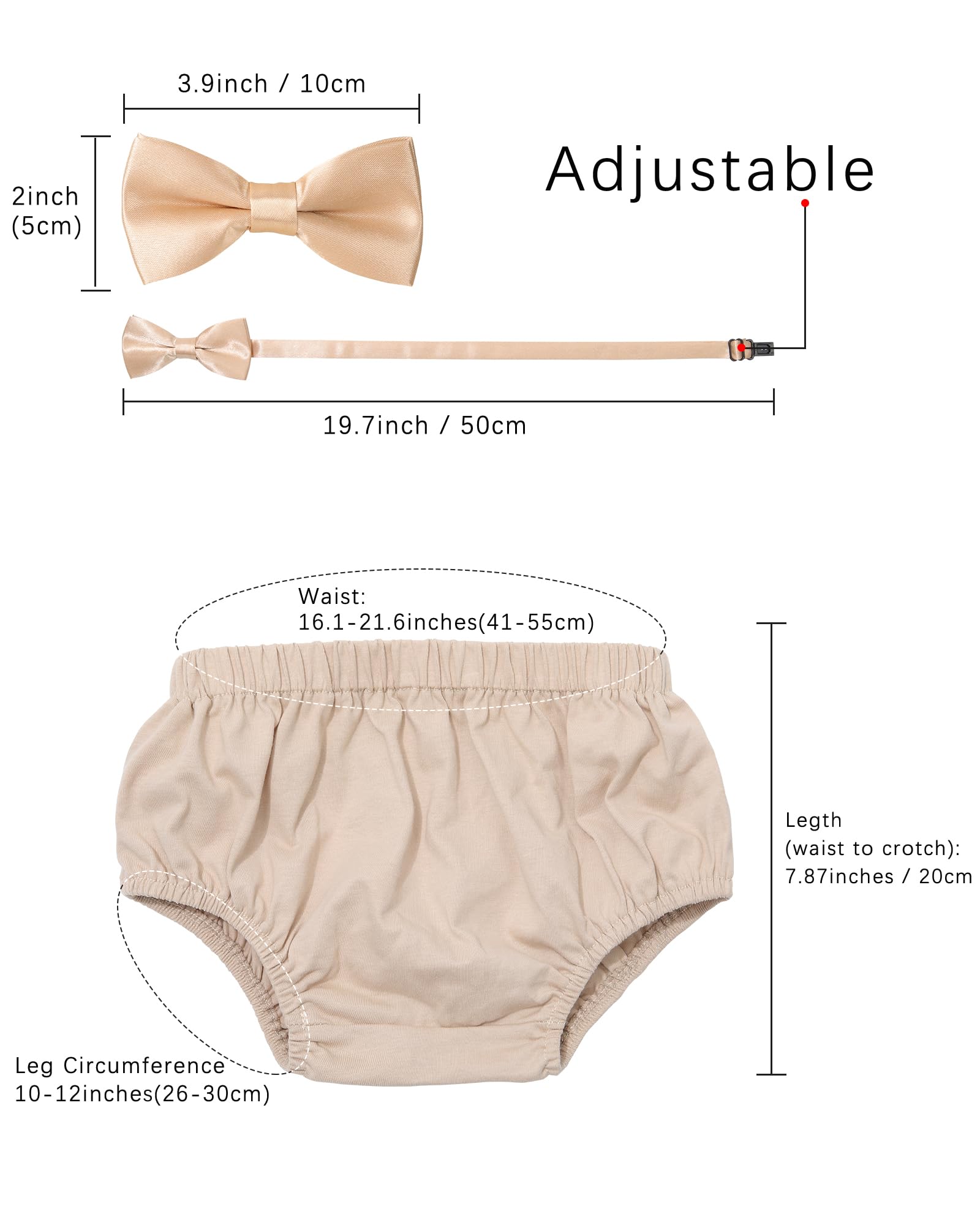 【Size】: Cake pants:waist: 16.1-21.6"/41-55cm, length (waist to crotch): 7.87"/20cm. Suspenders:max length: 25.0"/63.5cm. Bowtie: the 2 * 4'',circumference: 12-17.7"/30-45cm. Crown: 7 x 8CM, 2.7" x 3.1"