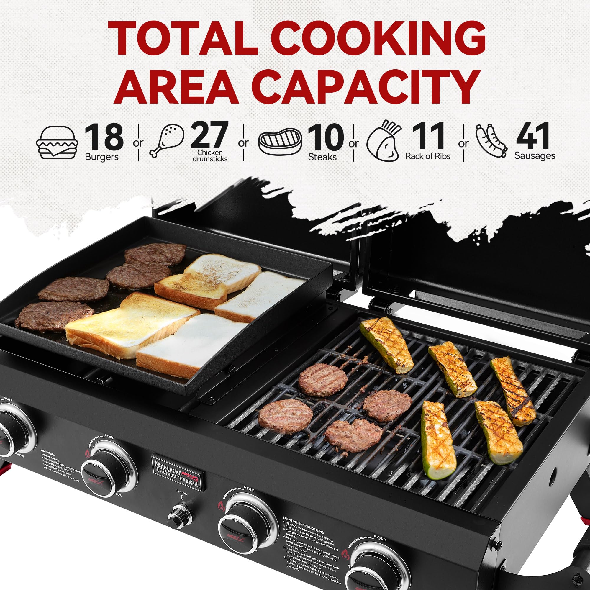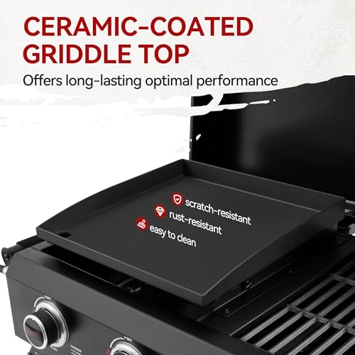 Versatile 2-in-1 Design: This combo lets you grill or griddle with ease—sear steaks on cast-iron cooking grates or whip up breakfast on the ceramic-coated griddle top. It's the perfect grill and griddle combo for cooking exactly how you want, no limits
