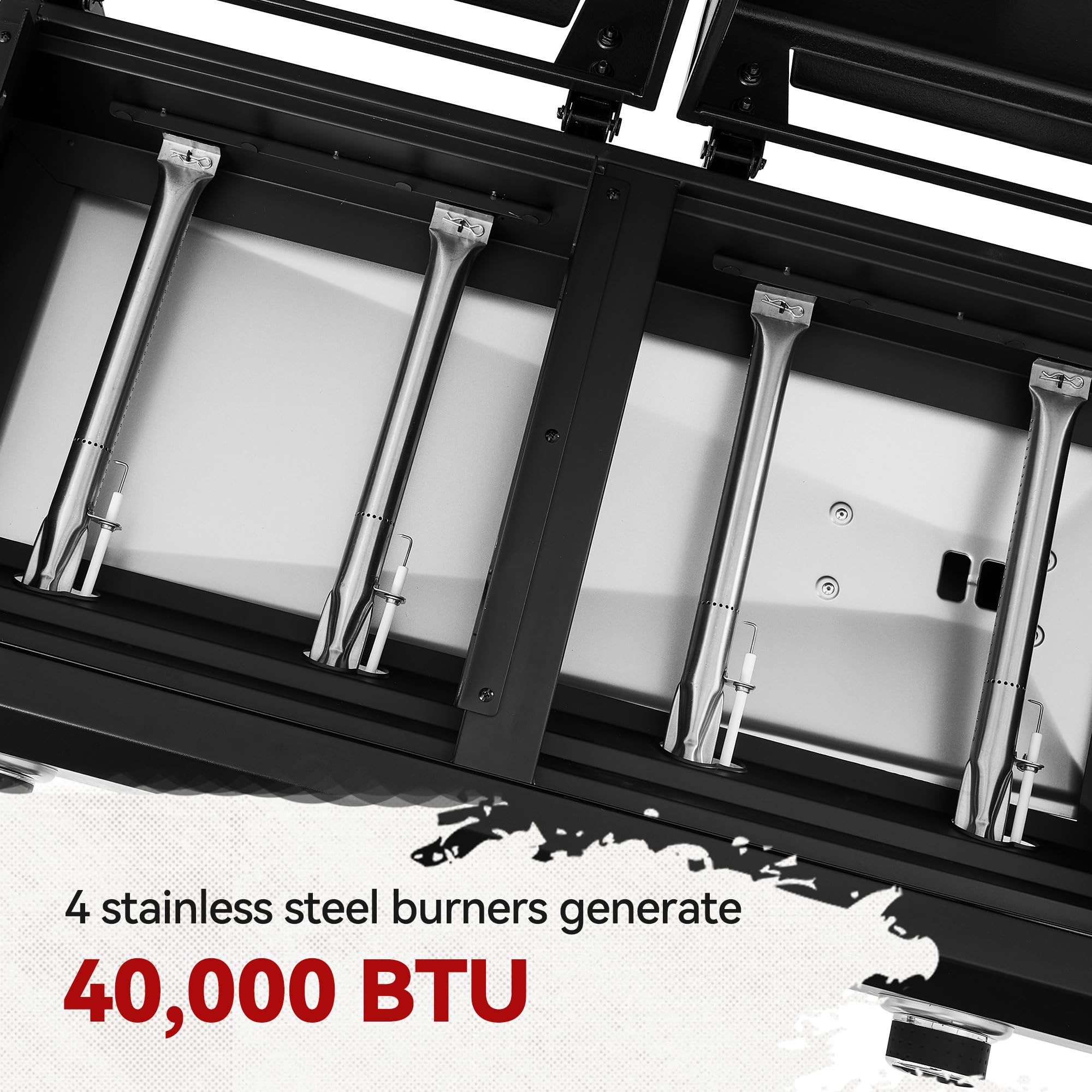 Powerful Performance & Easy Ignition: Four stainless steel burners (10,000 BTU each) deliver 40,000 BTU total, heating 416 sq.in. cooking space evenly. This grill griddle combo features reliable electronic ignition—just turn knobs to HI and push the ignitor for instant flames, ensuring consistent cookouts every time