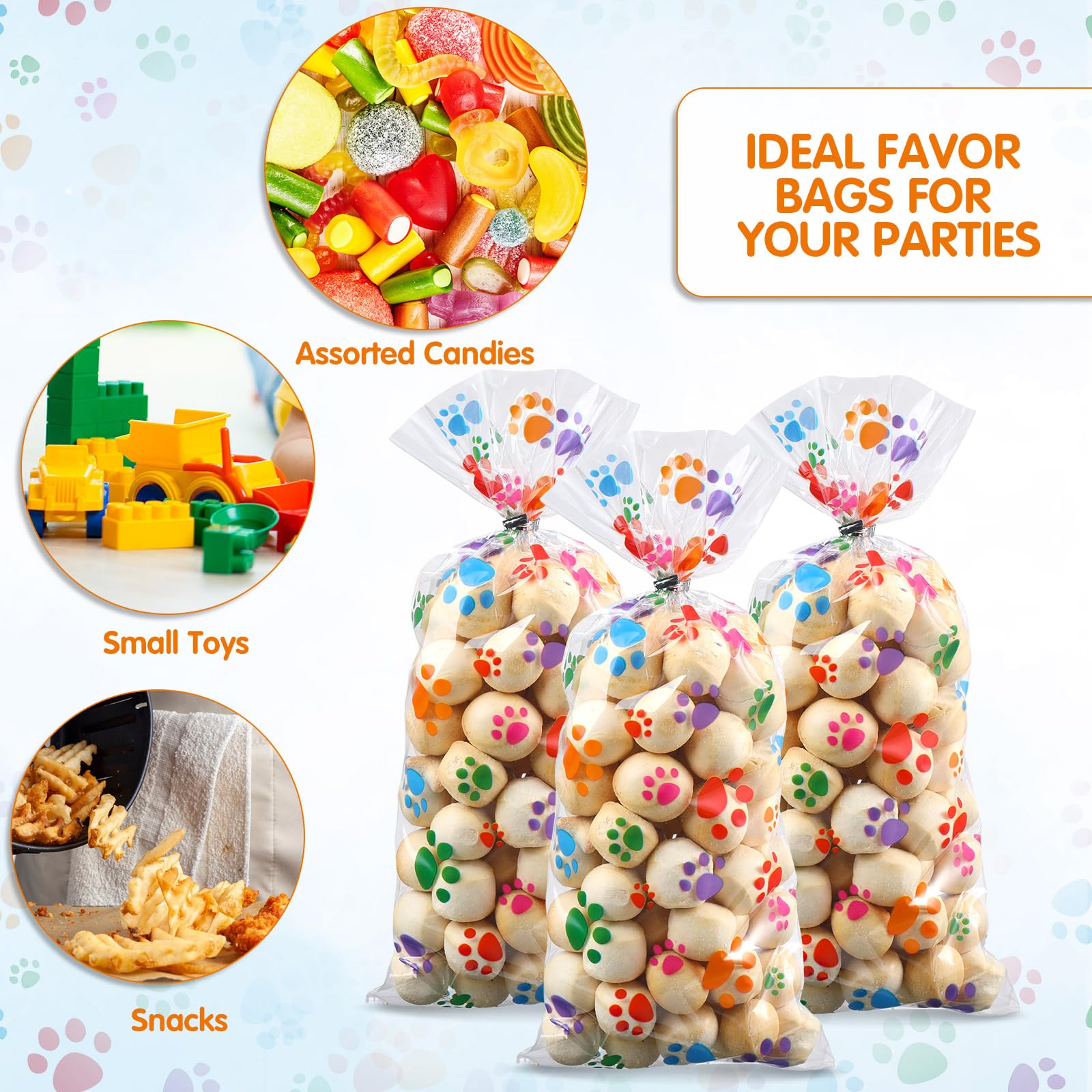 Design: these cellophane bags are designed with paw print patterns, which can add pet party atmosphere, catch both children and adults attention, cater to the interests and taste of children