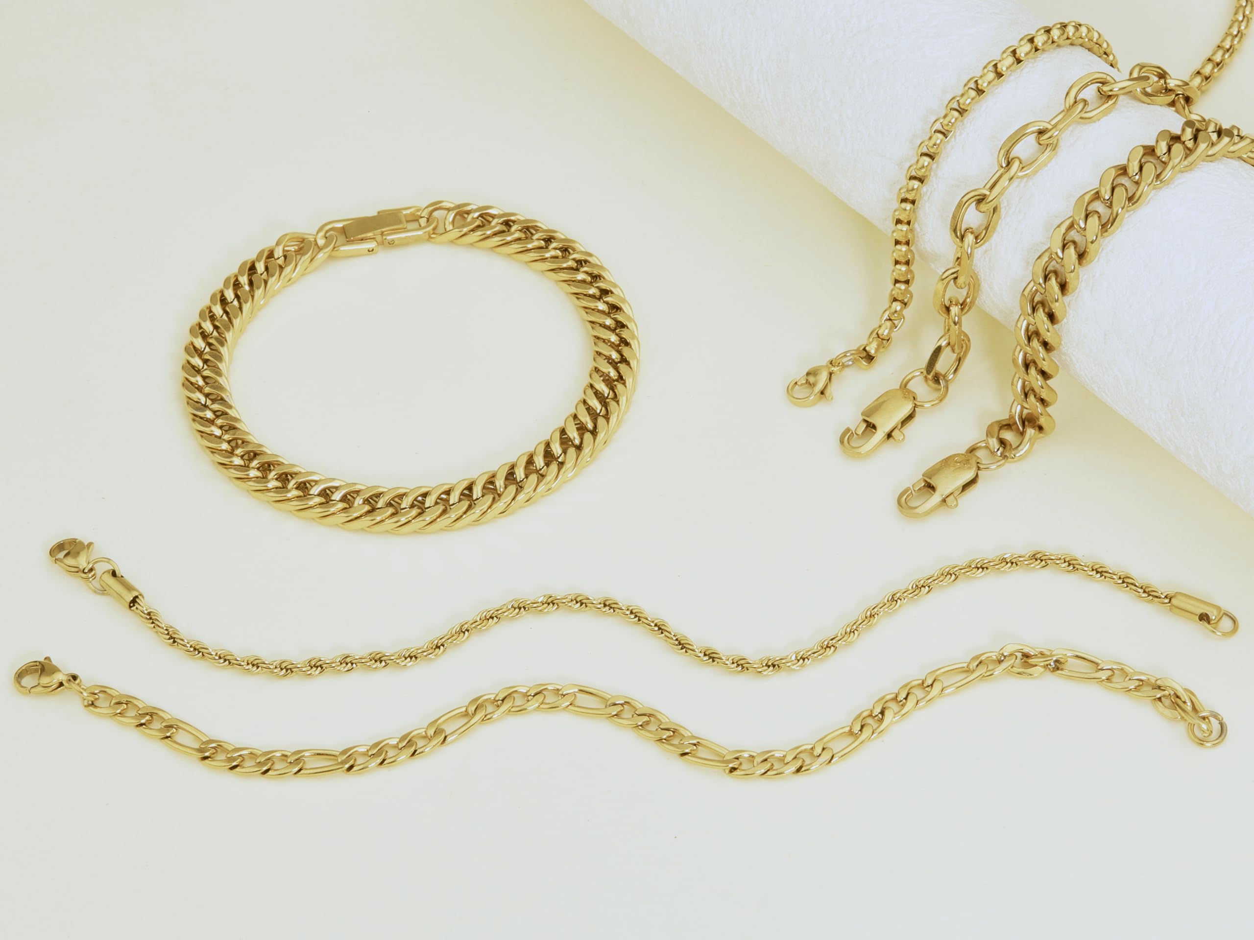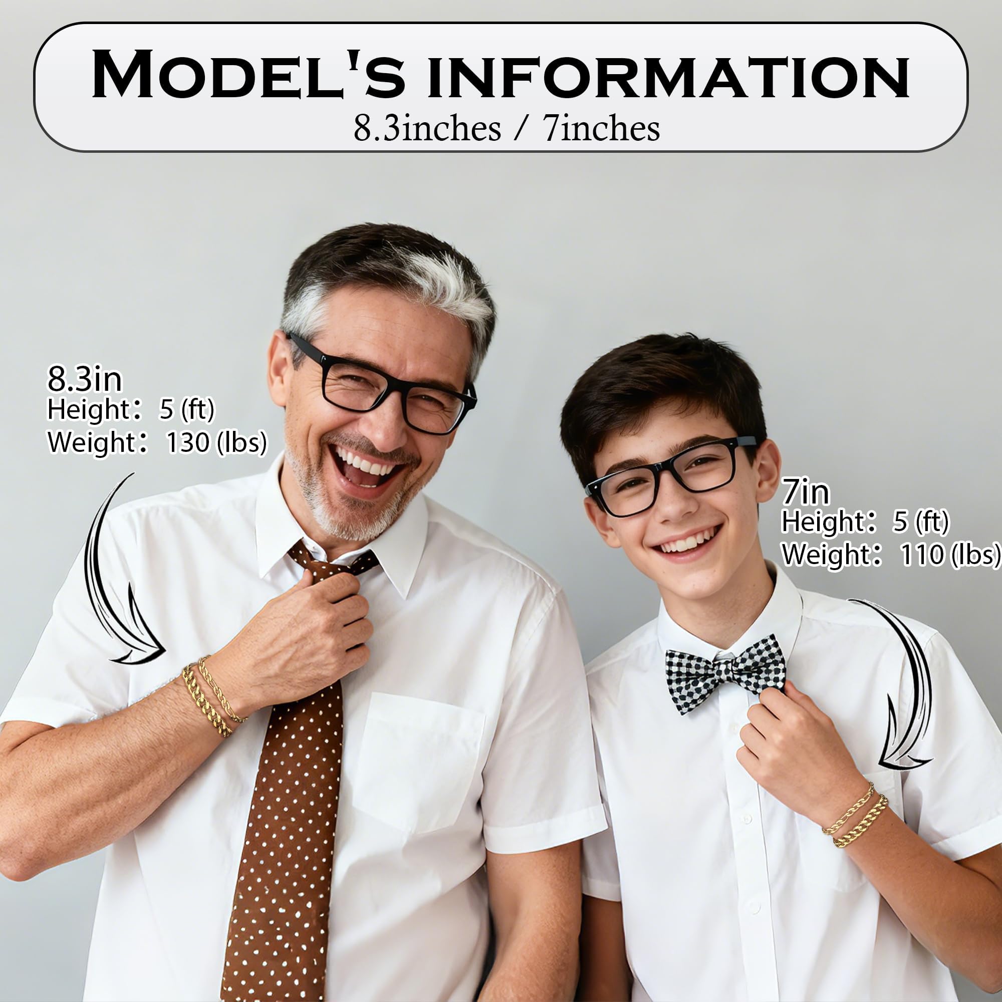 Gold Bracelets for Men: The stainless steel bracelet is inches long, which is a good size for most men's wrists. Of course, we also have 6.5/7/7.5/9 lengths for you to choose from. The width of the stainless steel bracelet ranges from 3mm to 8mm. The bracelet is designed with 3 different closure methods according to different styles, so that each style can have the best wearing and taking off feel