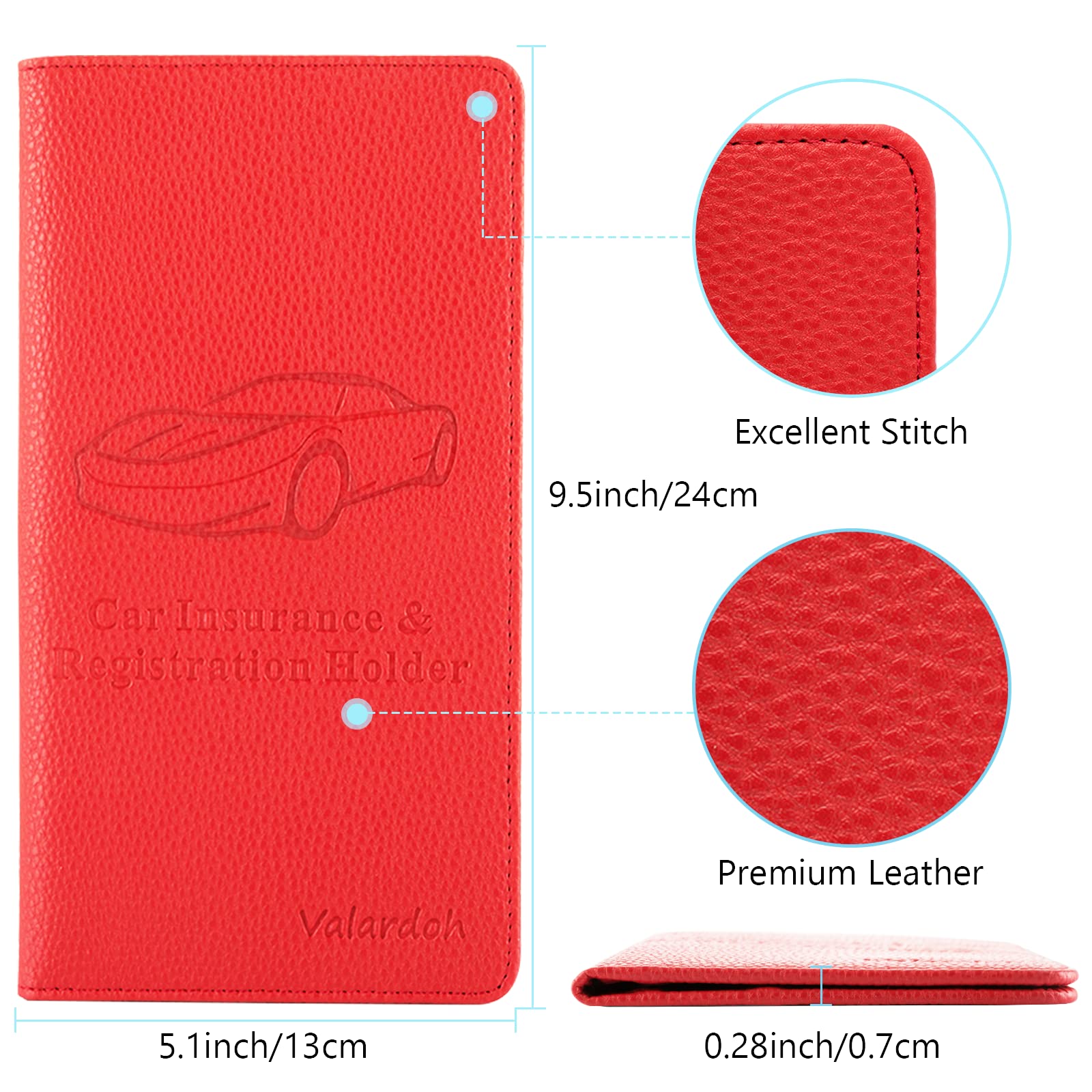 Description Scope of Delivery: 1 x Car Registration and Insurance Holder Features: Perfect size(9.5" x 5.1") to fit into your car console. 6 Pockets designed -- 2 on the left and 4 on the right. Magnetic closure holds each other and provide ease of use. This car document holder provides: Long lasting protection for your vehicle registration and insurance card, and other essential paperwork. The papers will not be scattered in the glove box anymore when owning this registration and insurance card holder.