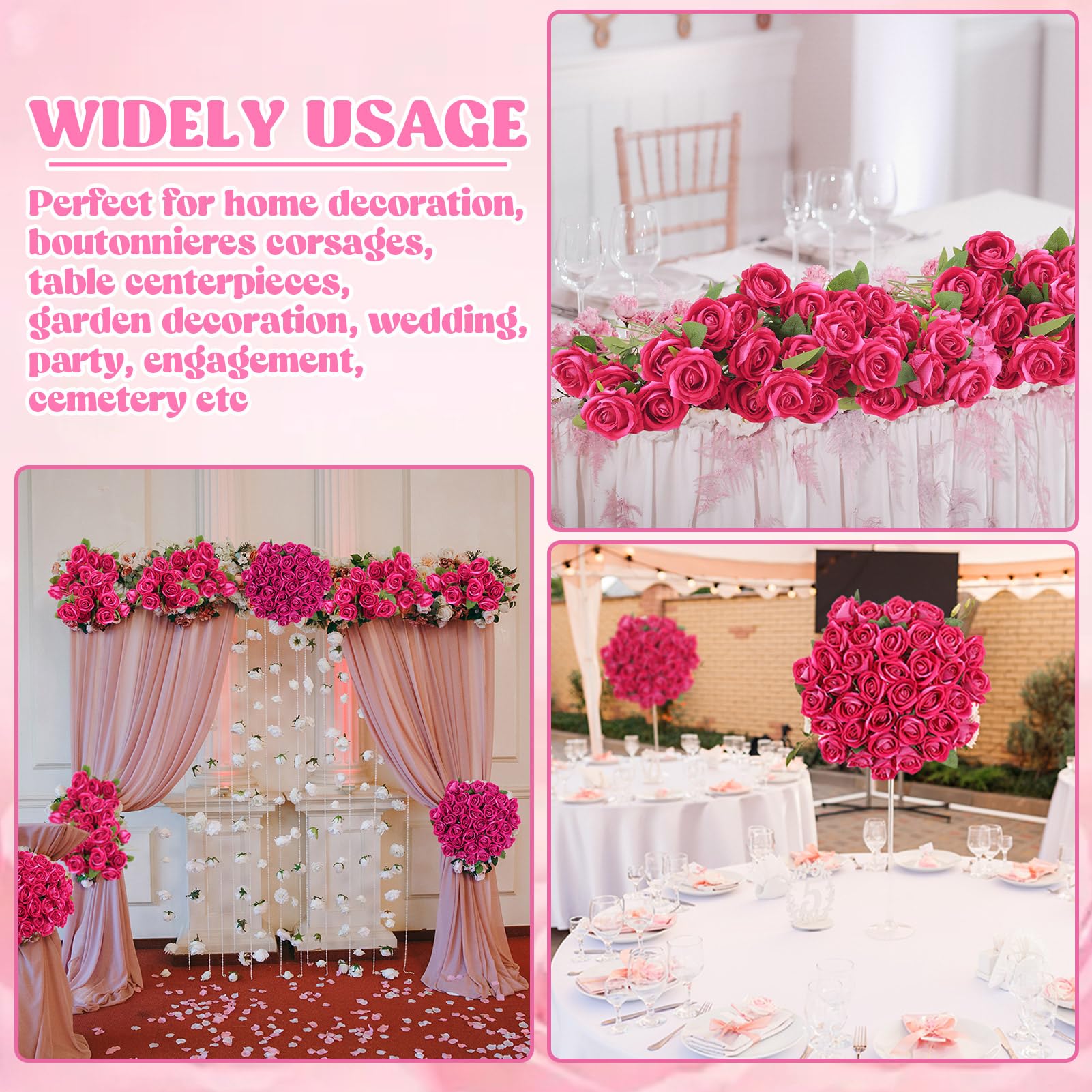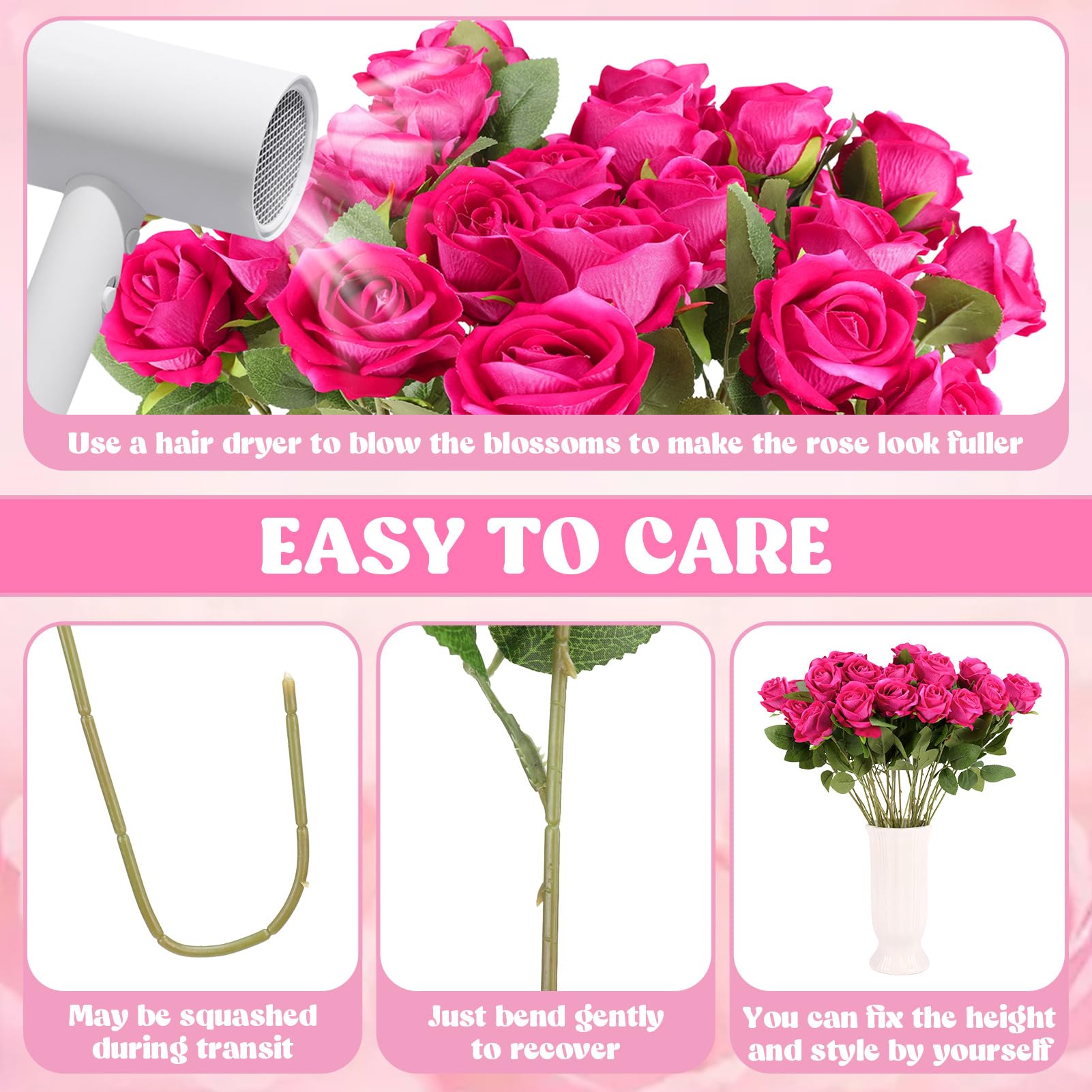 Natural Appeal: Receive 36 artificial hot pink roses with stems, each intricately crafted with lifelike details and gentle textures. Vivid red hues and realistic petal designs infuse a sense of elegance and beauty into any environment