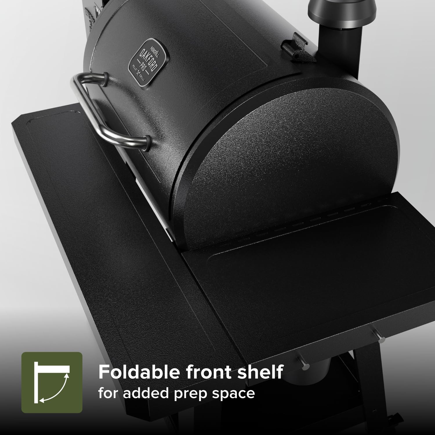 【FOLDABLE FRONT TABLE】 Provides extra workspace when grilling and folds down easily for compact storage when not in use.