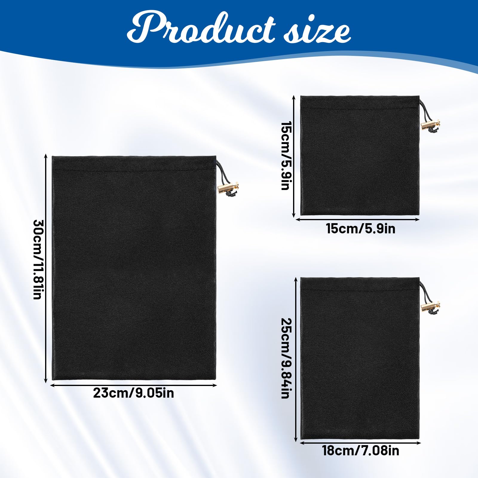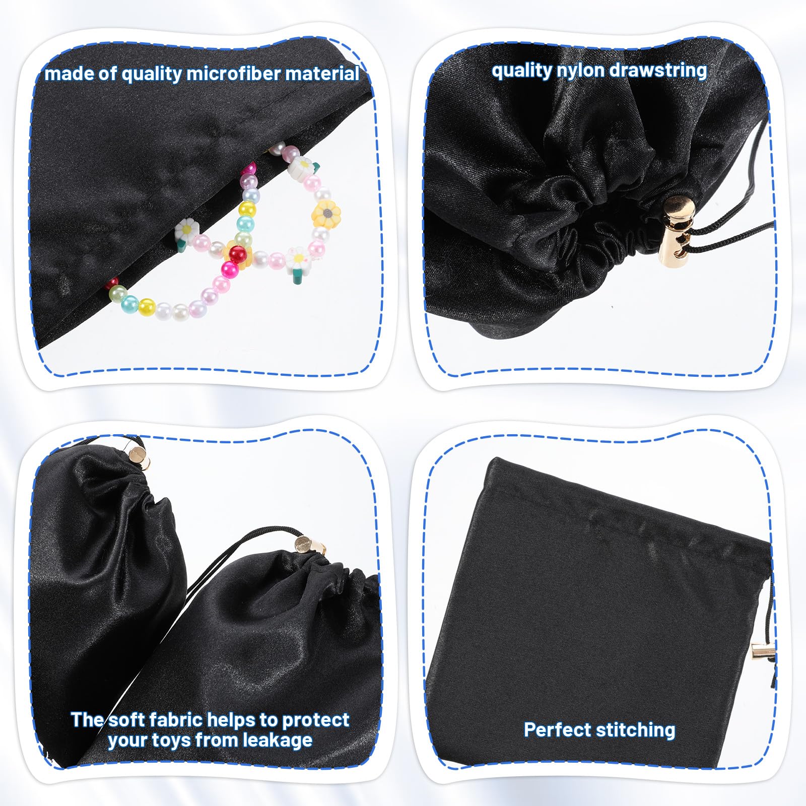 Complete Set for Versatile Use: The package includes 6 exquisite black toy storage bags in 3 different sizes, with two bags for each size. This variety ensures that all your daily storage and replacement needs are met efficiently