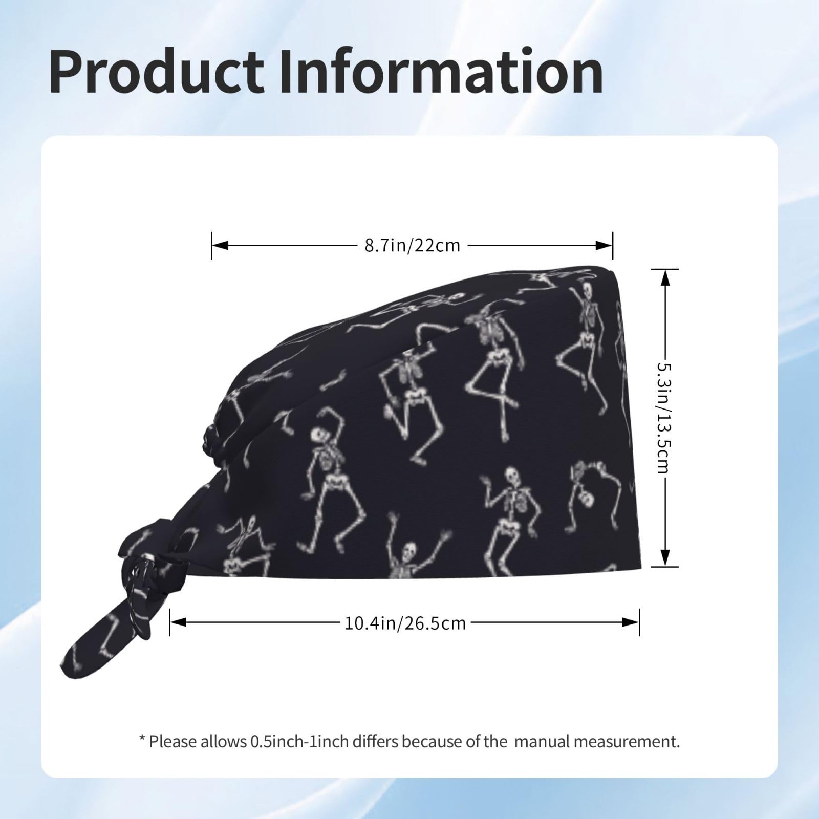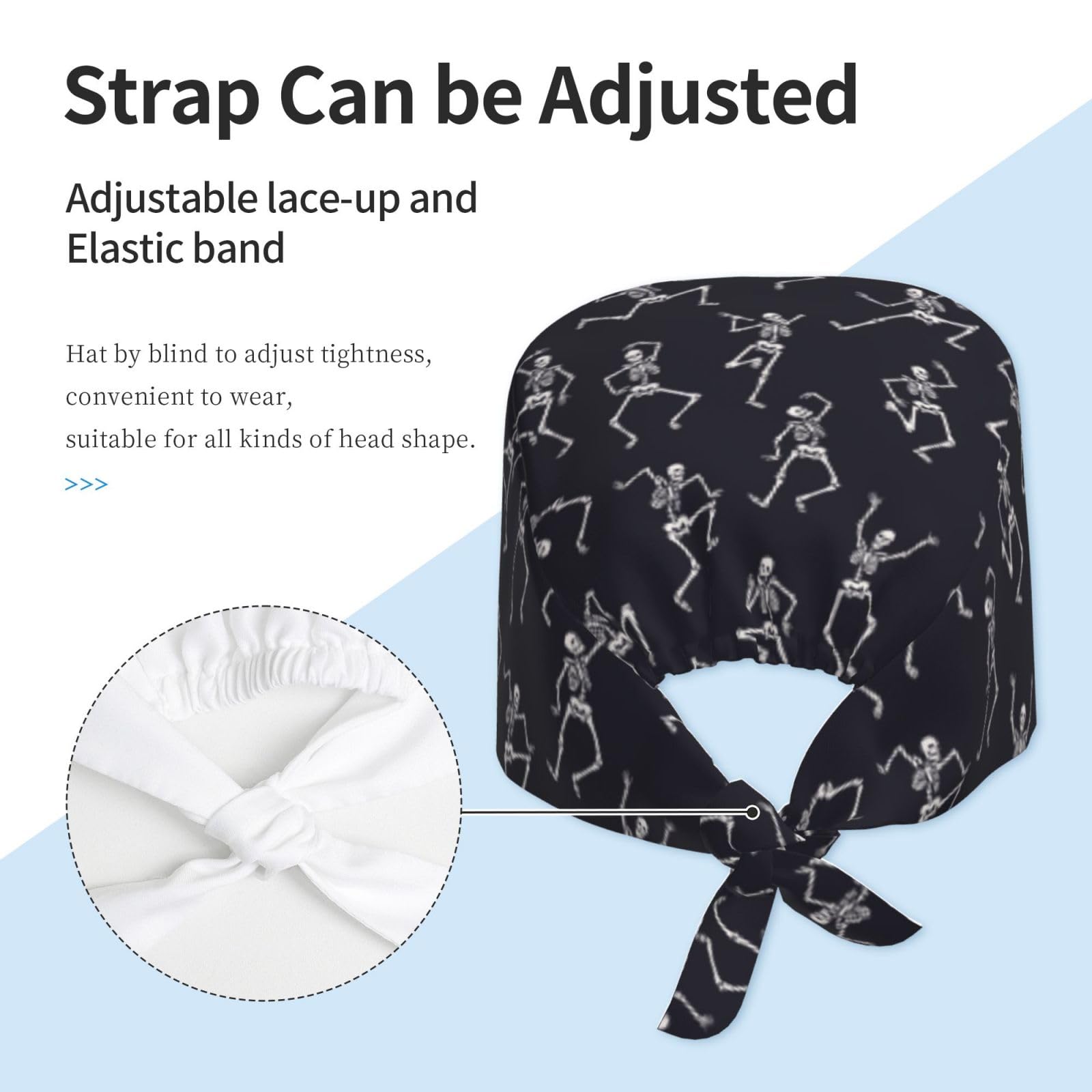 Adjustable Size: The happy skeletons nurse cap features elastic band and lace-up design at the back. More convenient for you to adjust the tightness to fit your head better, and allowing you to finish in a stylish knot or cute bow according to your hair. It is suitable for different sizes of heads and hairstyles, saving you the time to choose a size
