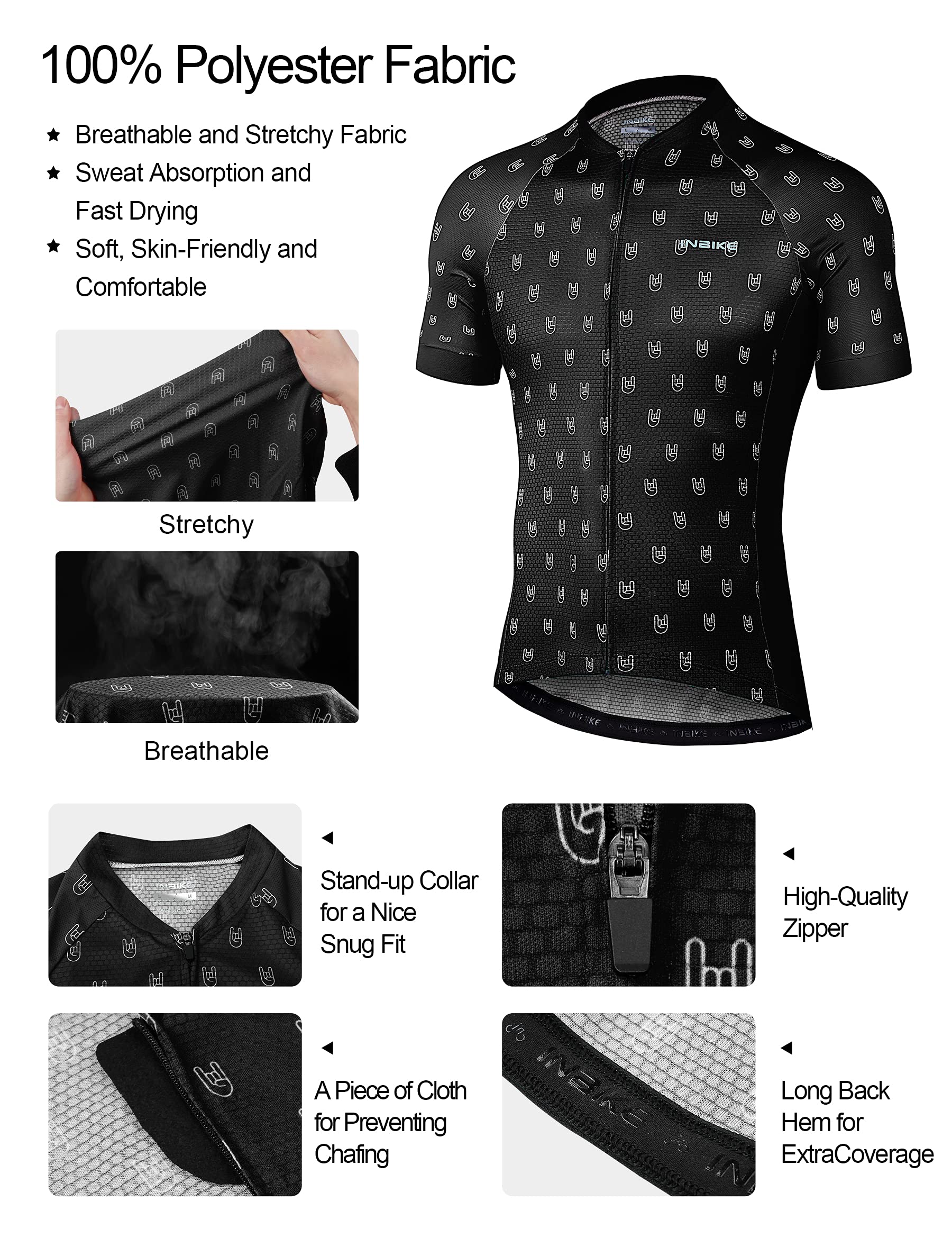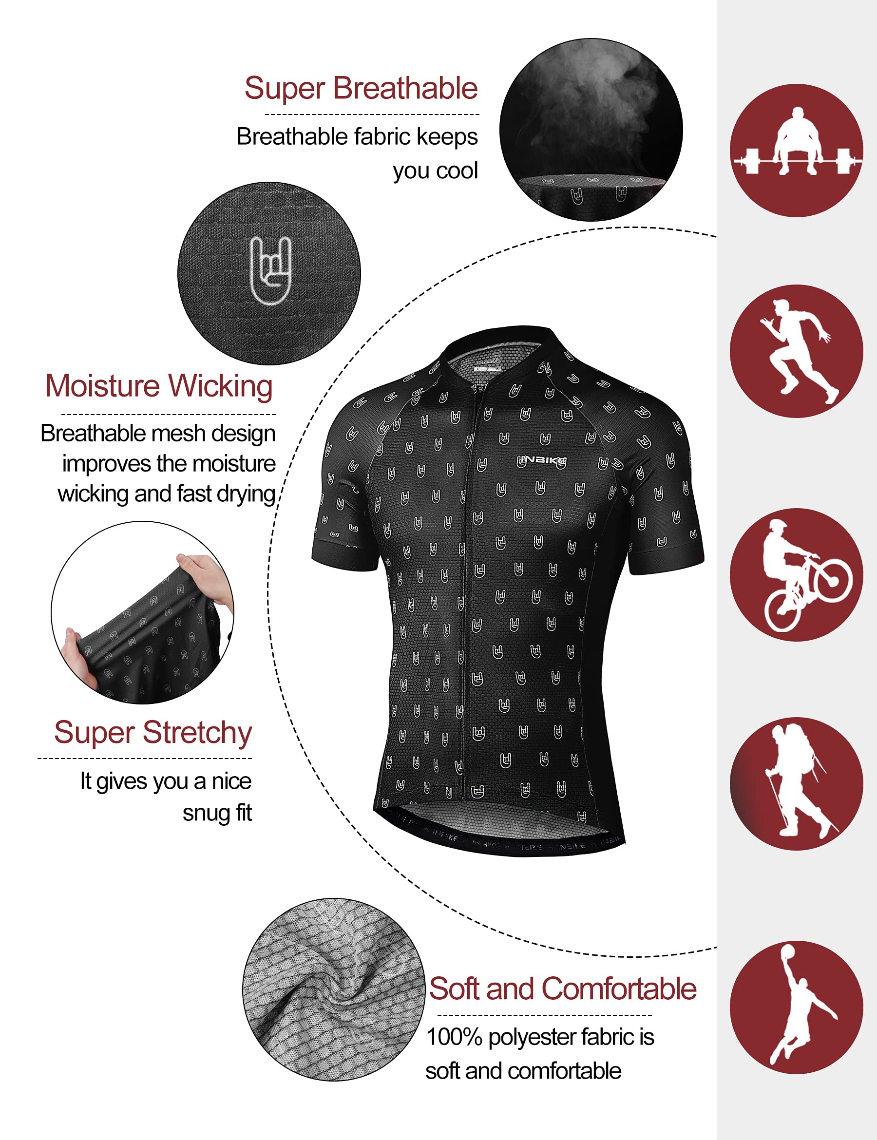 [Breathable Bike Jersey]: This biking shirt is made of 100% polyester, good elastic, lightweight and durable. It’s very comfortable to wear, taking away sweat quickly so you won't feel it sticks to skin, ideal for cycling, gym fitness or other outdoor sports.