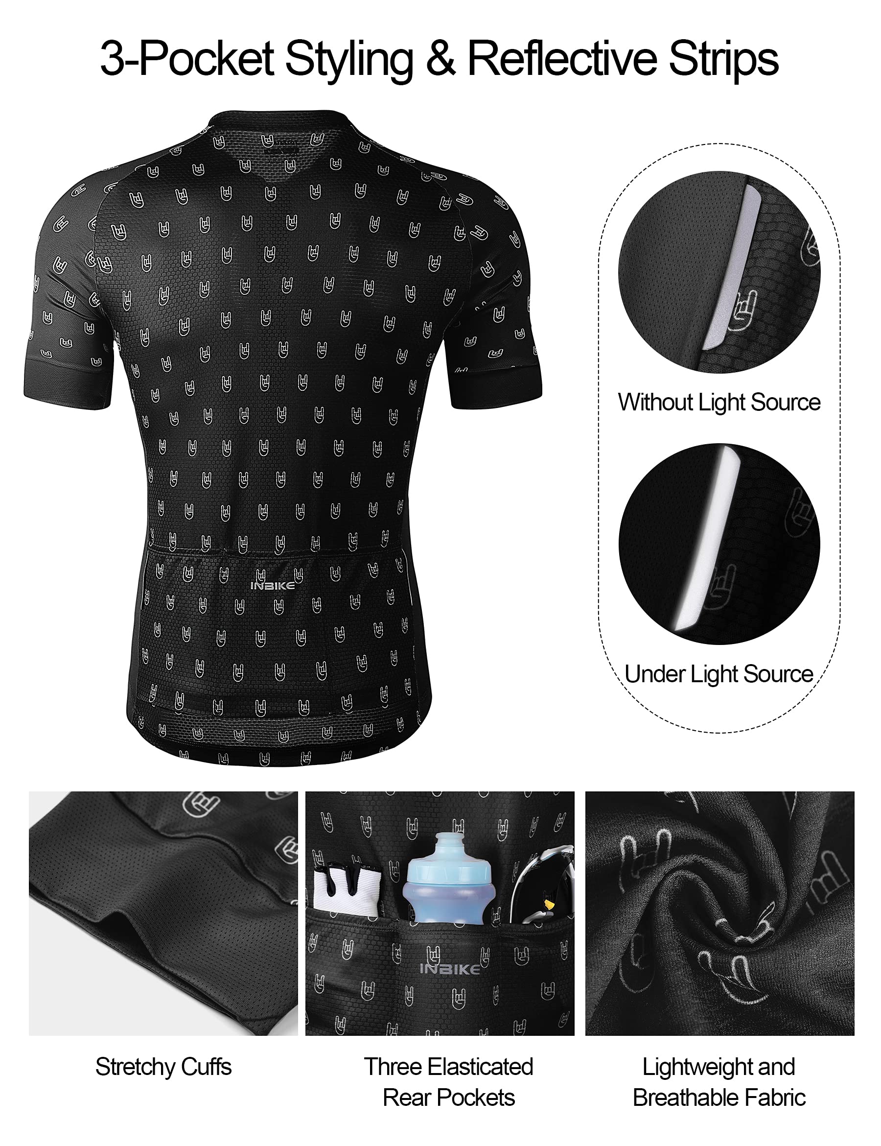 [Reflective Cycling Jersey]: Reflective stripes increase safety for night riding. Longer back hem with for extra coverage. Silicone anti-slip strip prevent it from gliding upwards.