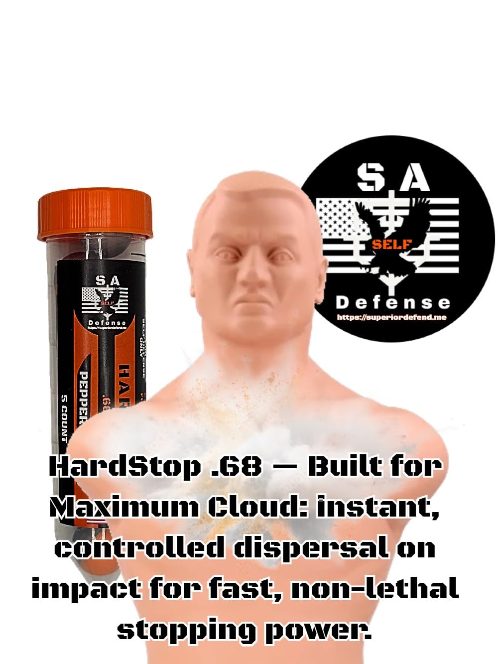 S.A. Self Defense Trusted Protection — HardStop .68 caliber pepper balls by S.A. Self Defense give you a reliable, non-lethal self-defense option designed to help you stop threats and get to safety.