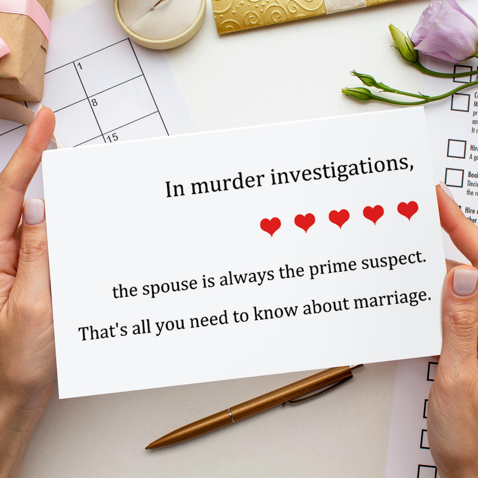 Celebrate love with our Modern, Letter Print Wedding Greeting Card, perfect for couples. Measuring 8x5.3 inches, it's printed on premium 300gsm card stock, left blank inside for your personal message. The humorous design and funny words make it an ideal gift for weddings, engagement parties, or bridal showers, sure to bring laughter and memorable moments.