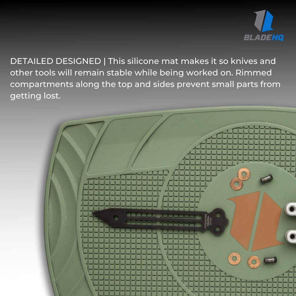 DETAILED DESIGNED | This silicone mat makes it so knives and other tools will remain stable while being worked on. Rimmed compartments along the top and sides prevent small parts from getting lost.