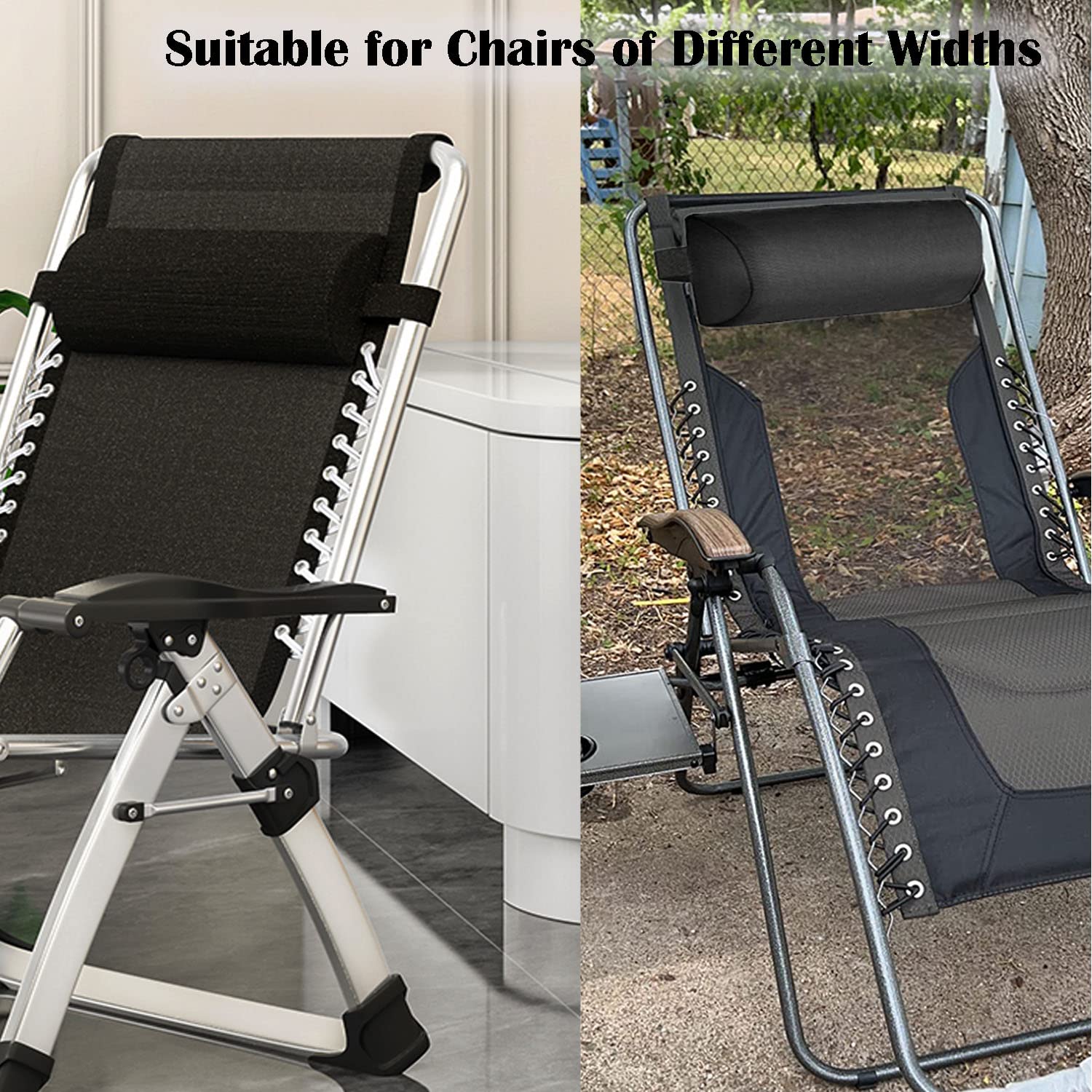 ADJUSTABLE ELASTIC BAND: Elastic bands are 27cm(10.6”) long, the longest stretch to 20cm(7.8) - 65cm(25.6”), comfortable lounger chair pillow headrest is fixed to the user's chair at the required height to provide perfect support. The adjustable gravity chair pillow can be installed on any chair of different sizes.