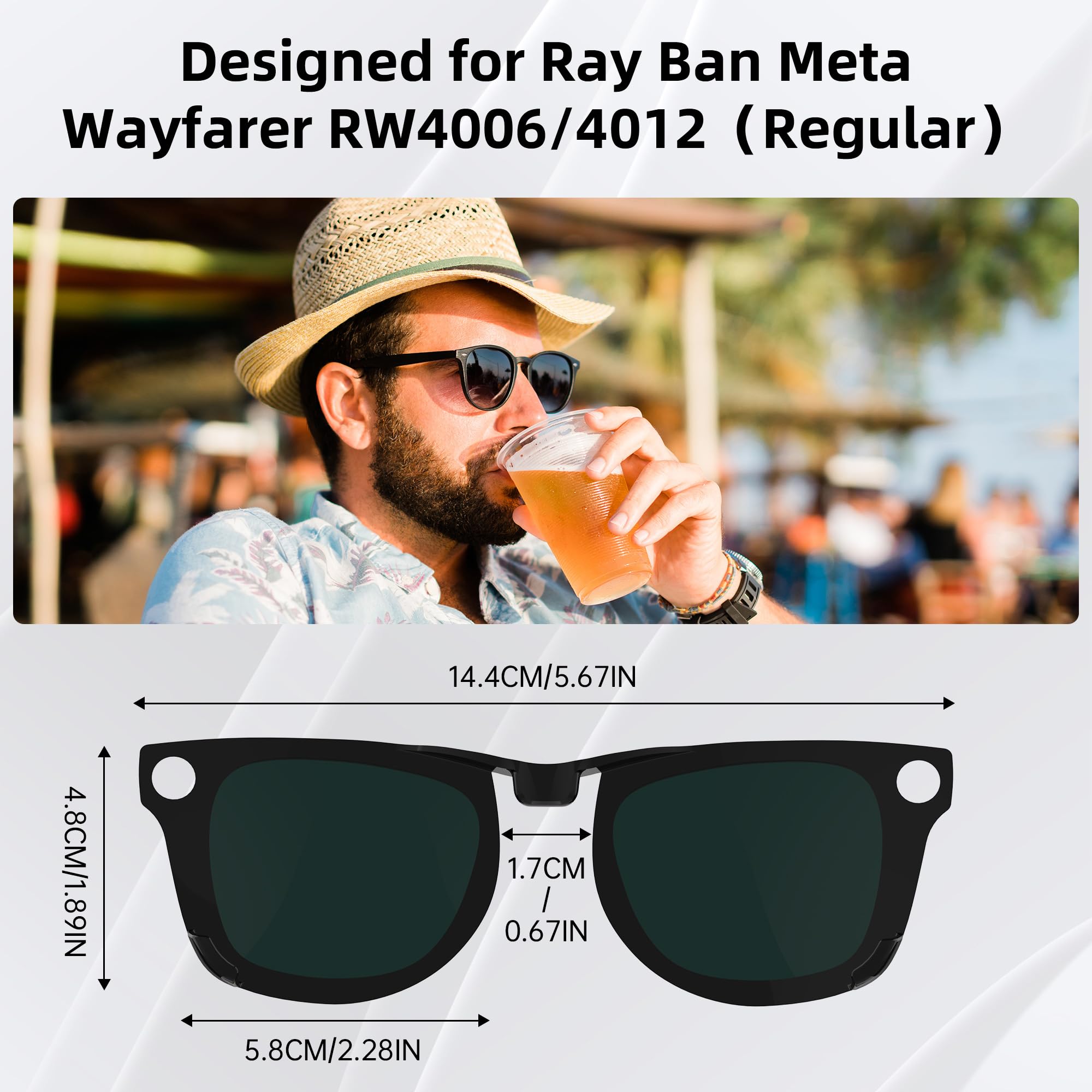 🕶️🕶️PERFECT FIT: This sunglasses clip-on is specially designed for Ray Ban Meta Wayfarer RW4006 and Gen 2-RW4012 Regular size, providing full protection without affecting the wearing of glasses, seamless fit, making your smart glasses look more beautiful and stylish