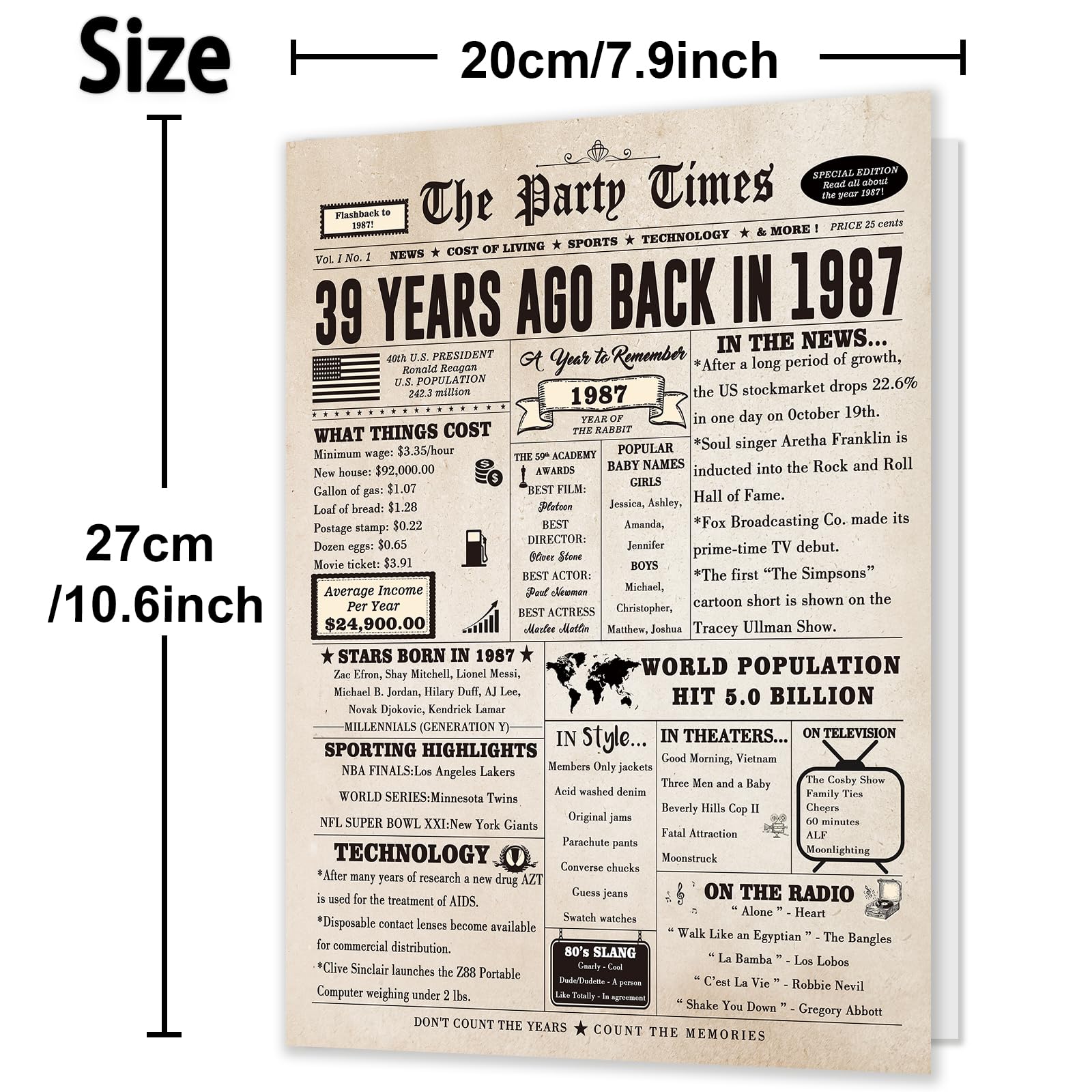 【Product Size】A 10.6 x 7.9 inches 39 year old birthday card stands out for its oversized size. It comes with an envelope for easy mailing or gifting