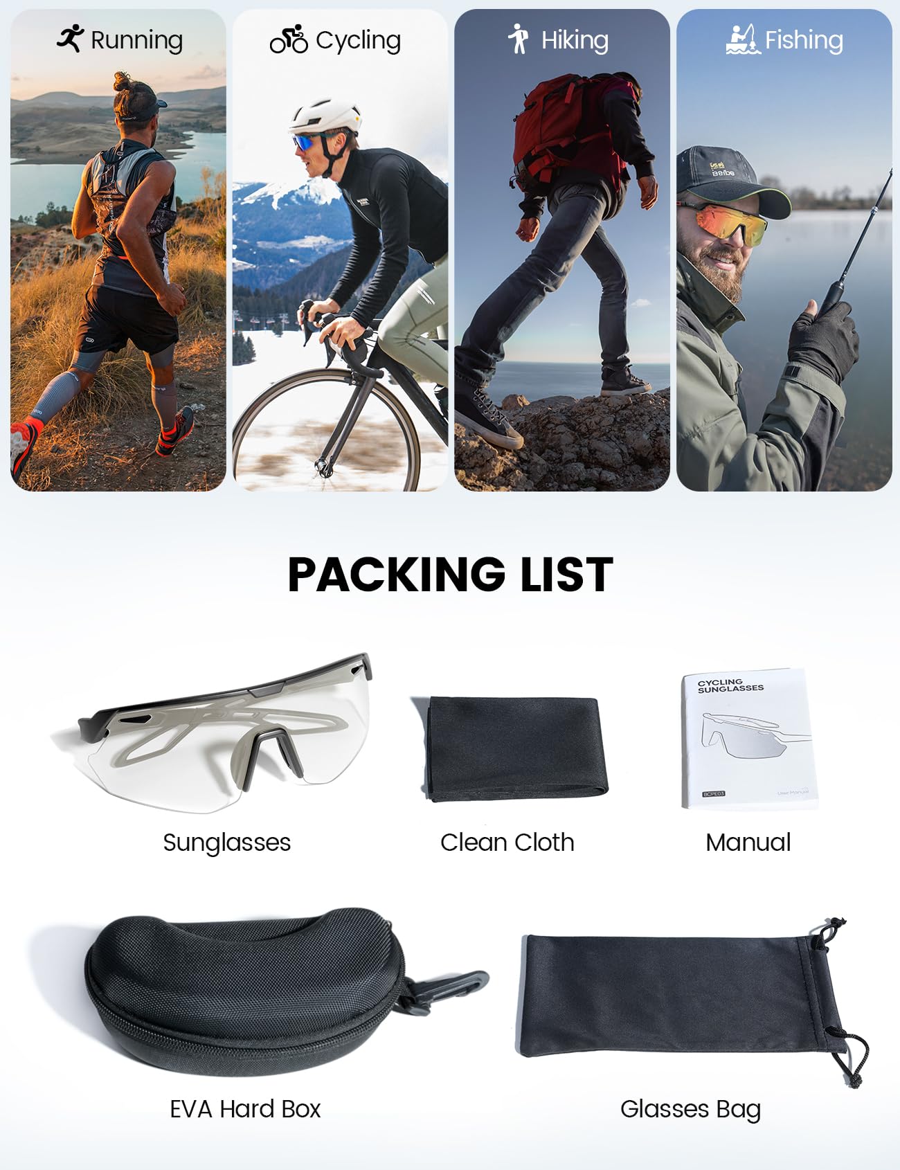 【Package】Each Lamicall running sunglasses set includes a hardshell case with a clip, microfiber cleaning cloth, pouch, instruction manualaper. You can easily clip the case to the outside of your backpack. Suitable for outdoor activities such as driving, cycling, running, baseball, fishing, hiking, golf, more.