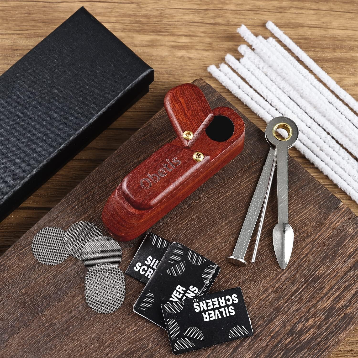 Tobacco Pipes & Accessories Kit - You will get 1 * tobacco pipe, 1 * 3-in-1 pipe scraper, 10 * pipe cleaner and 3 packs of pipe screens.