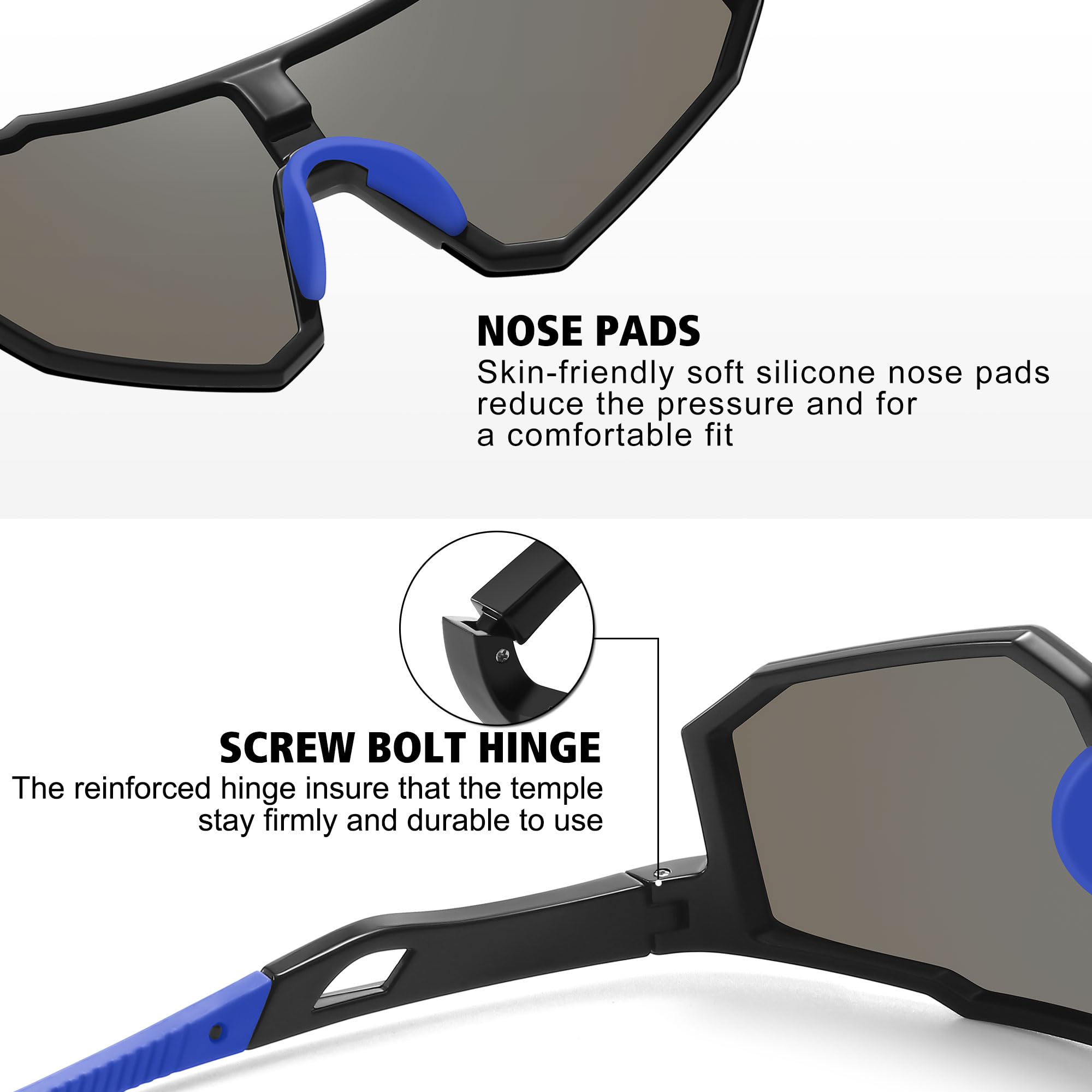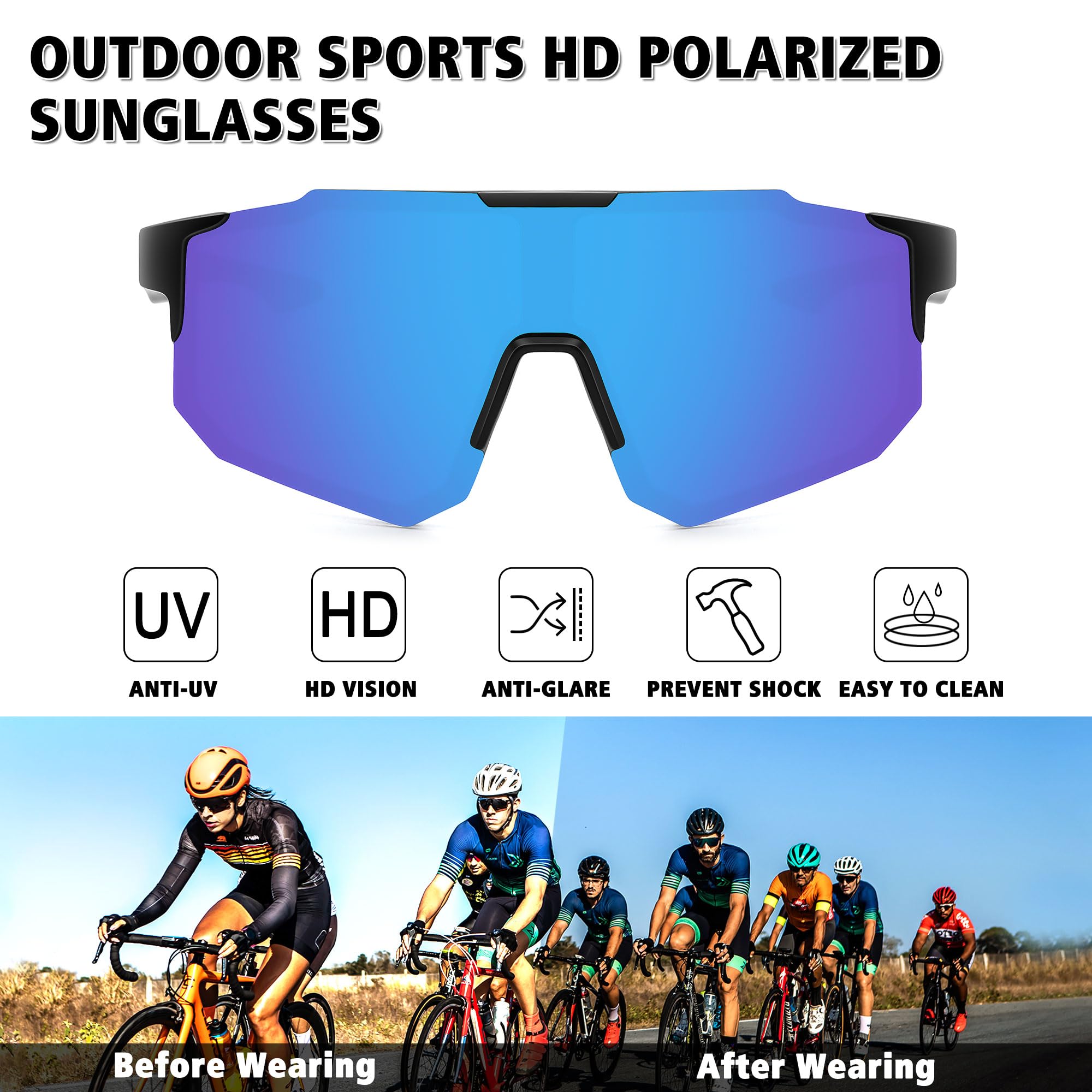 TAC HD POLARIZED LENS - 99% UV400 protection coating, blocks 99% harmful UVA & UVB Rays. Restore true color, eliminate reflected light and scattered light,make the scenery more clear and soft and protect eyes perfectly.Polycarbonate lens are impact, scratch resistant and unbreakable.