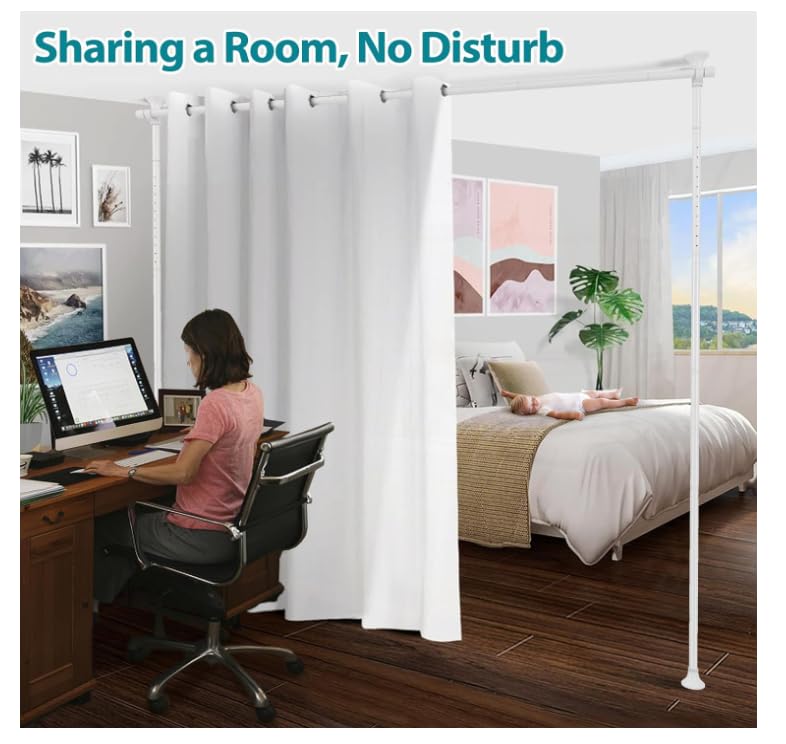 Kind Notes: Room divider ONLY, Curtains are NOT INCLUDED, please prepare the curtain before purchasing these curtain rods stand. Each tension curtain rod room divider has warranty of 12 months, replacement or refund available if anything goes wrong