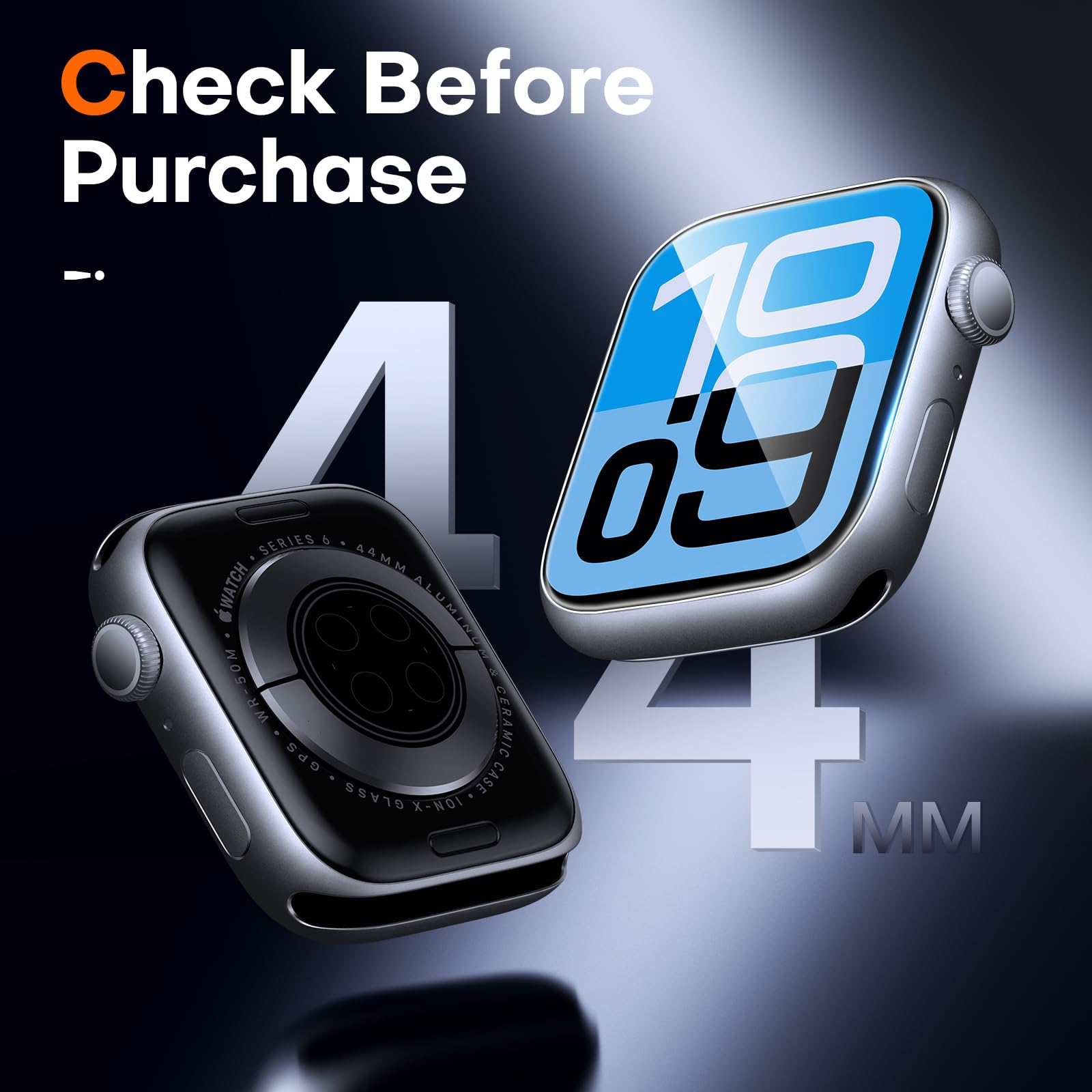 Compatibility - Specially designed for Apple Watch SE Series 6/5/4 44mm only, Includes 6 packs of screen protectors, NOT for any other models. Please check your Apple Watch model & size before purchasing