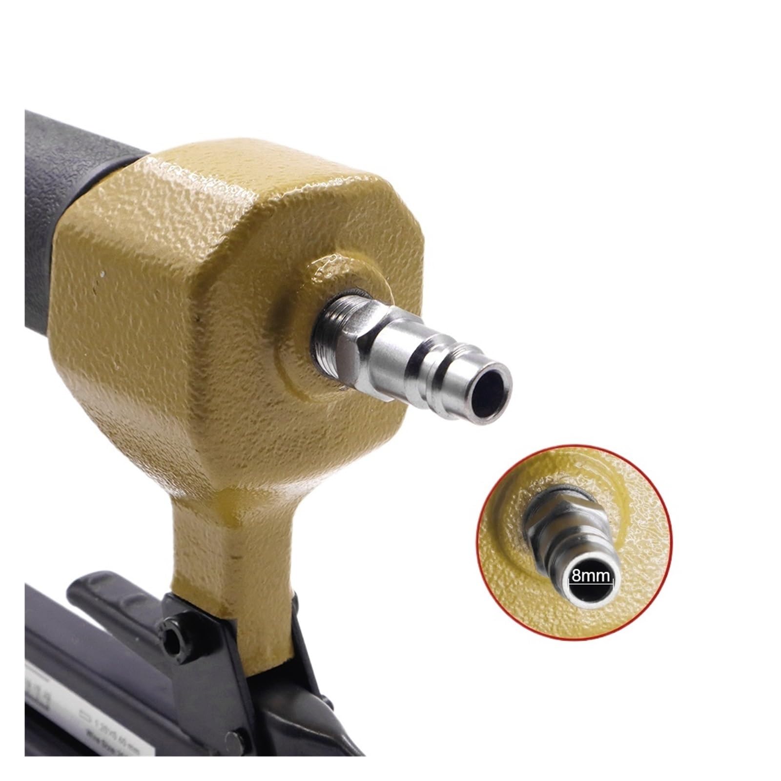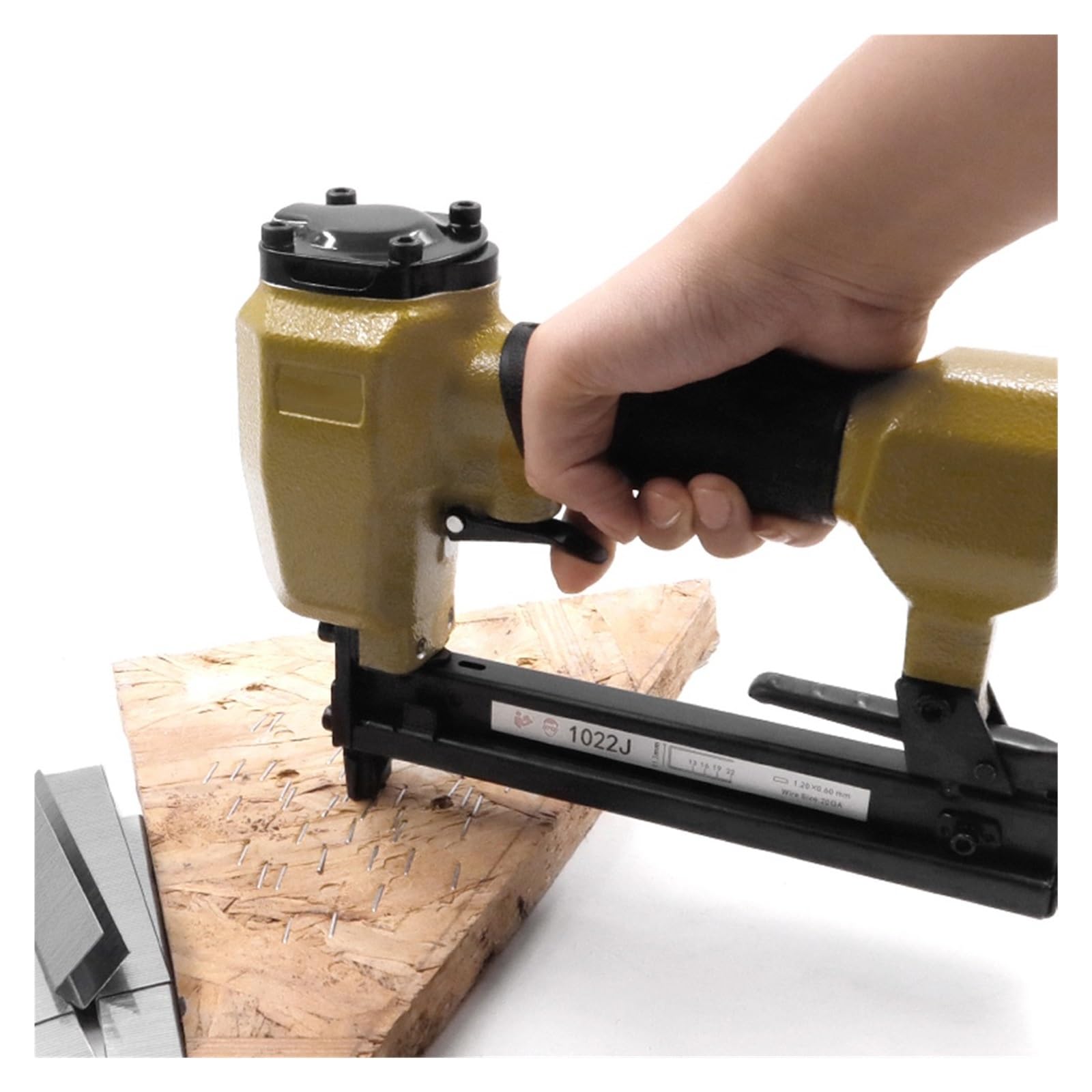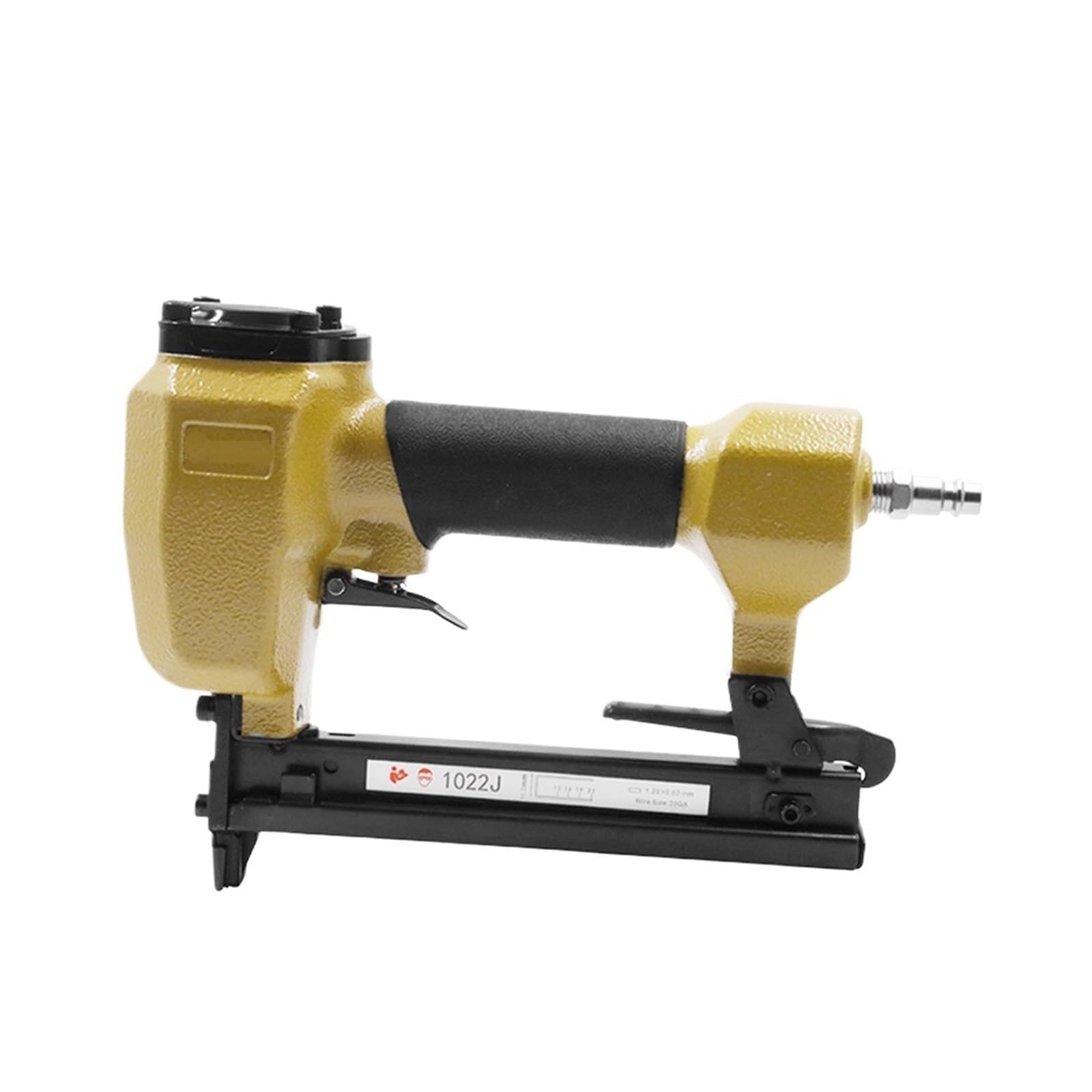 1. Compact and lightweight structure, soft handle, good balance and precise operation. 2. Large capacity loading is extremely convenient and can quickly replenish nails on the job. 3. Comfortable grip reduces fatigue caused by long-term work and improves the accuracy of fastener placement. Specification: Size : 220x160mm Model Number : 1022J Wire Diameter: 0.6x1.2mm Staple Pin Length : 10-22mm Staples Capacity : 100pcs Product Specification : 20 Ga Air Pressure: 4-7kgf/cm2 Application : Upholstery, furniture, kitchen, sleeping furniture, joinery, furniture combination Description: Strong strength, and rapid air-return Gun body strength heat treatment is firm, stable and safe high strength six angle screw, durable Package: 1pcs stapler