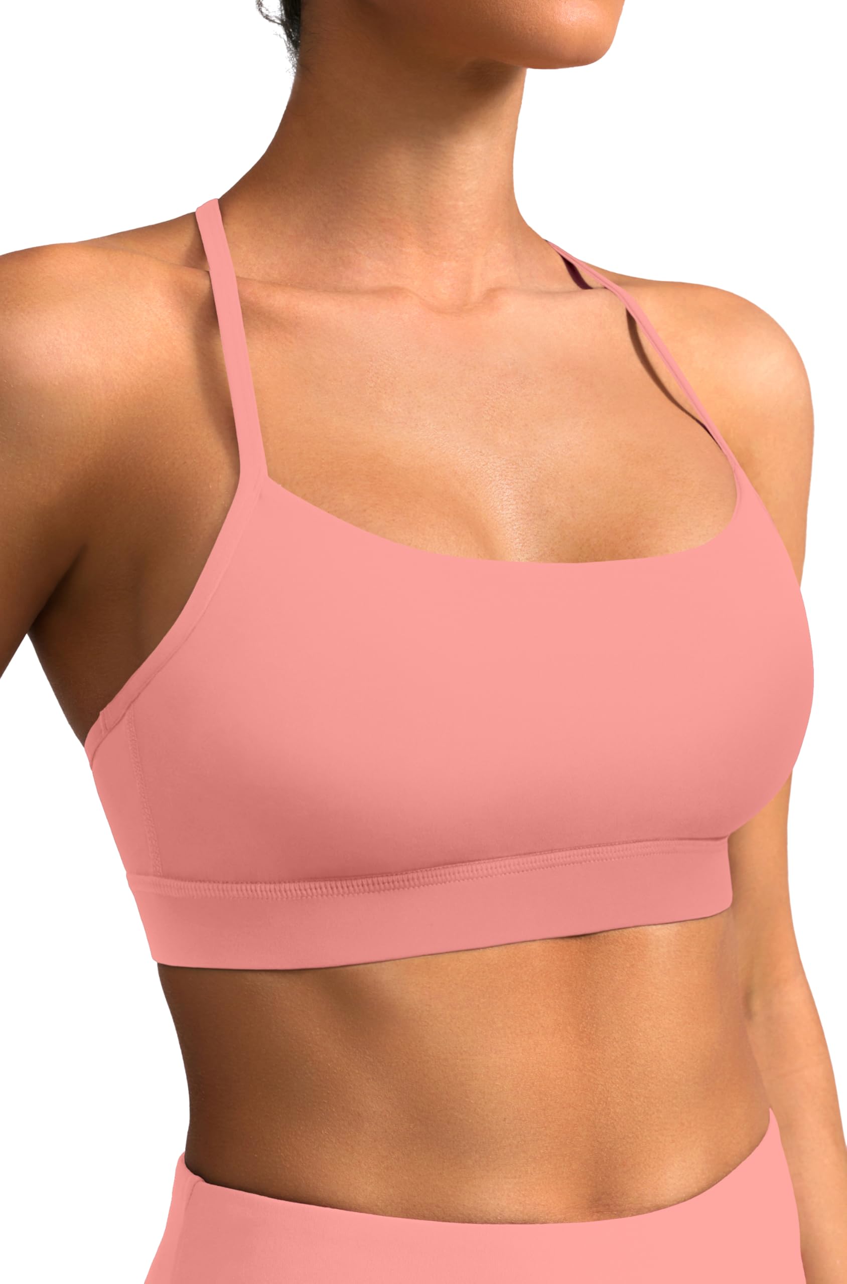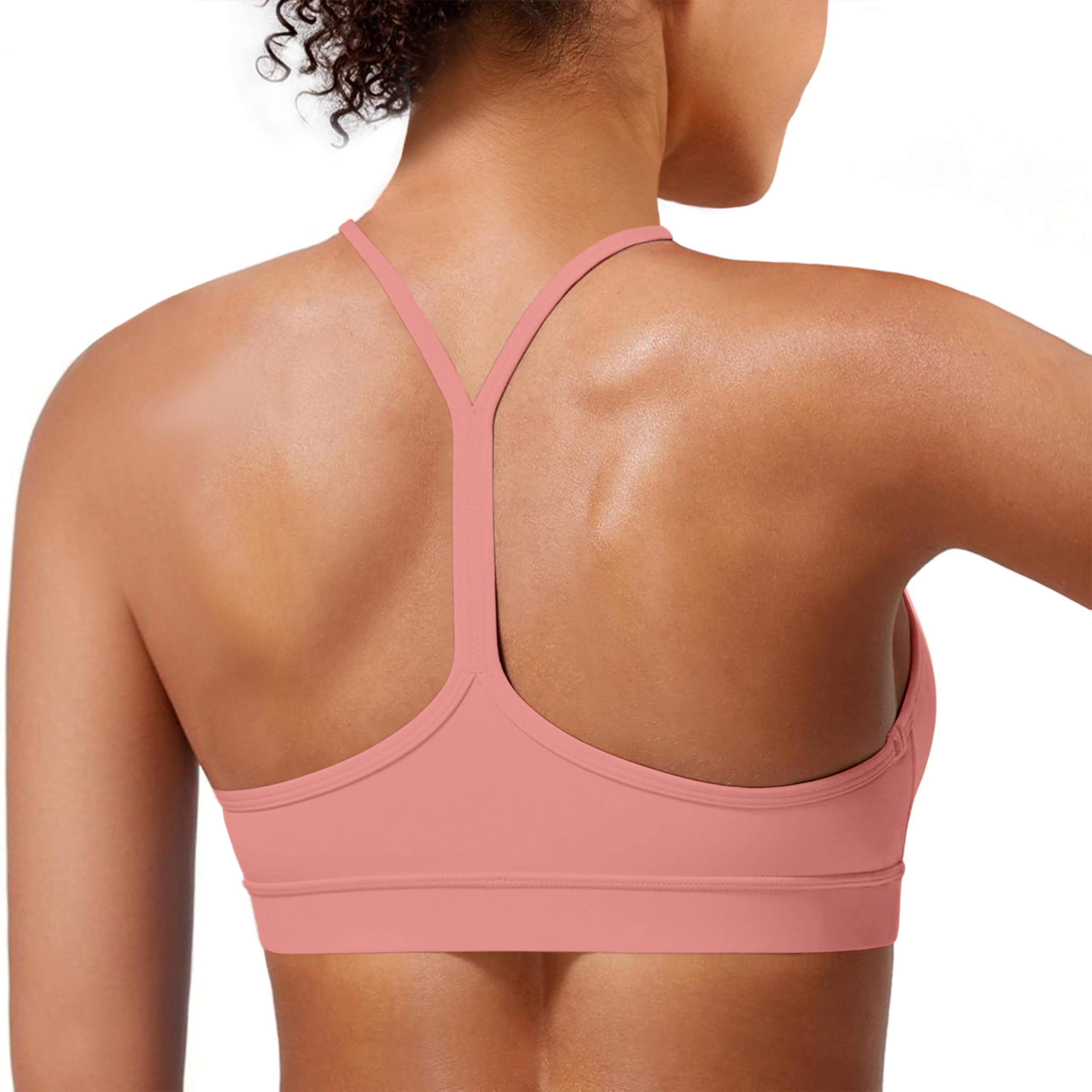 Comfortable Y-Back Design: Enjoy a full range of motion with this sports bra's Y-back strap design. Thin straps form a supportive Y-shape at the back, freeing your shoulders to move without restriction during workouts. The racerback-style Y design also prevents strap slipping or chafing, ensuring lasting comfort during every pose or activity. Plus, the open-back style allows airflow to keep you cool and adds a stylish touch to your workout outfits.