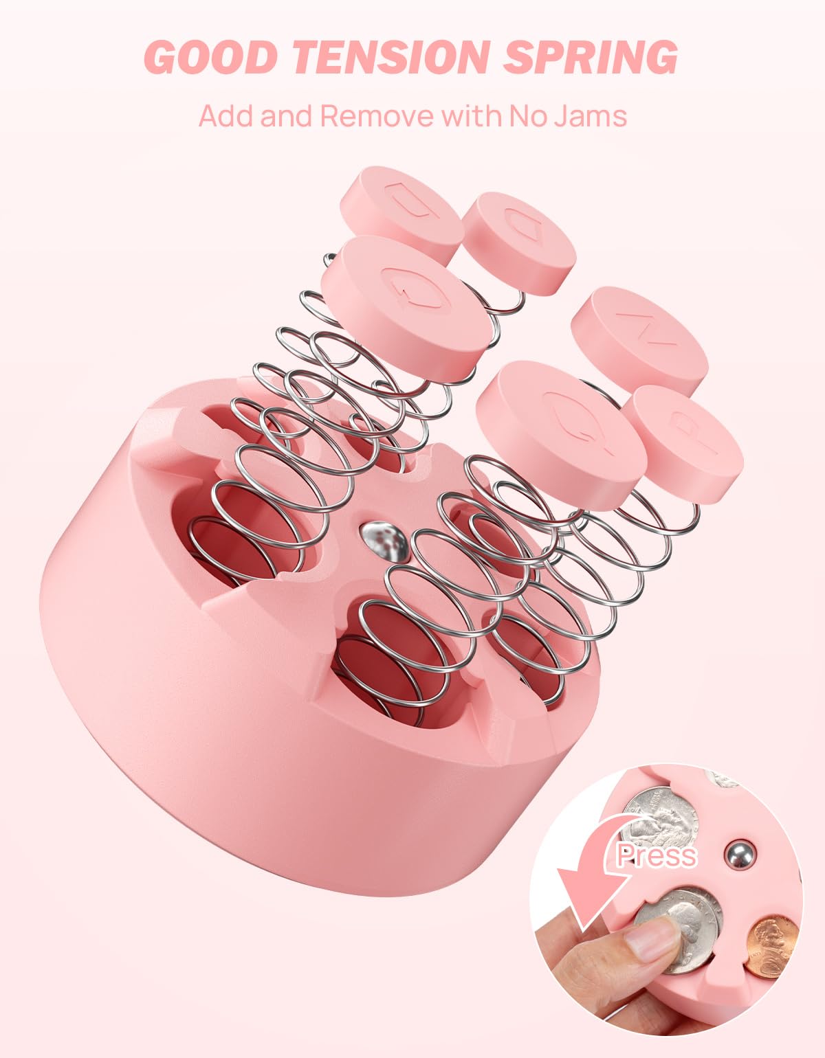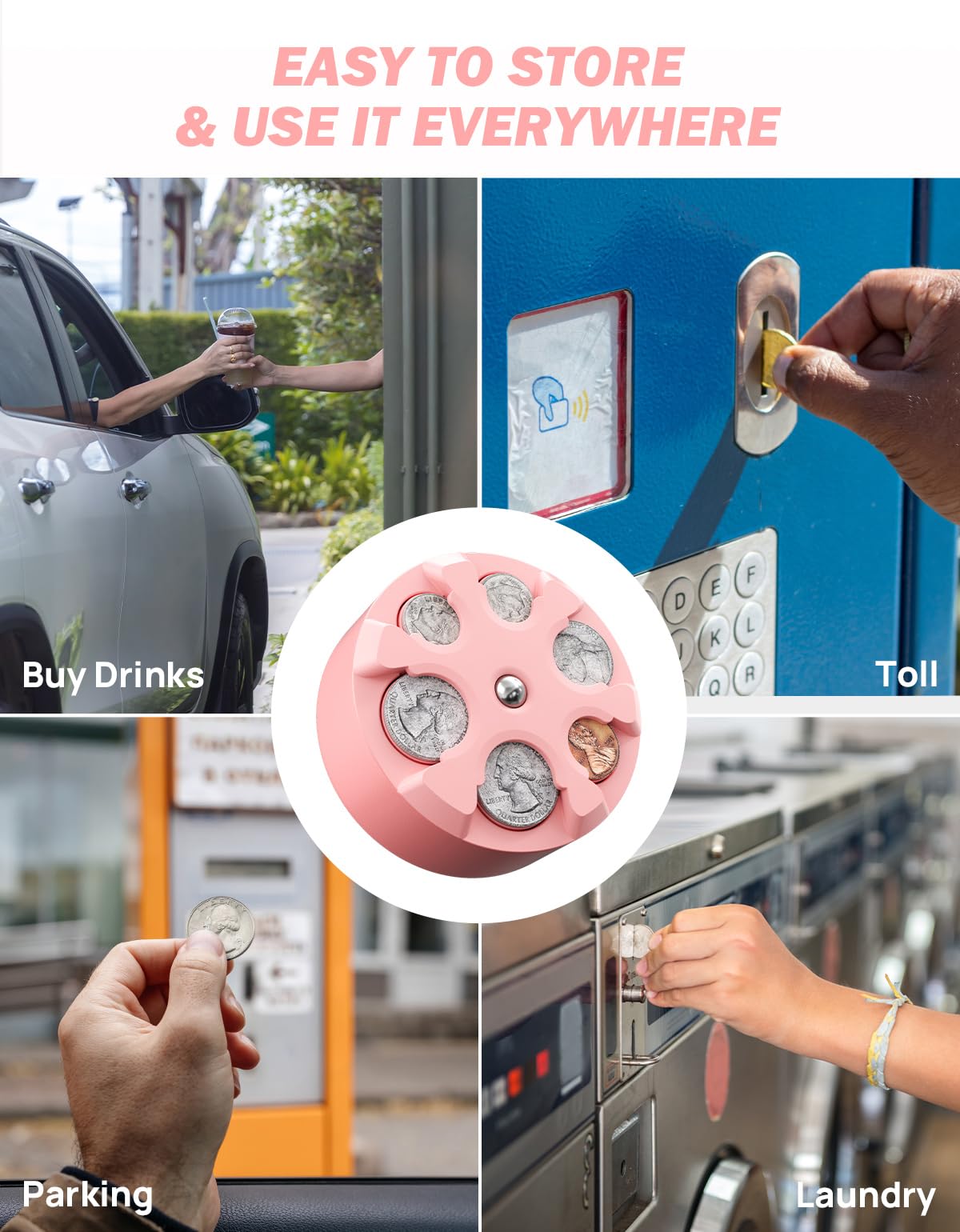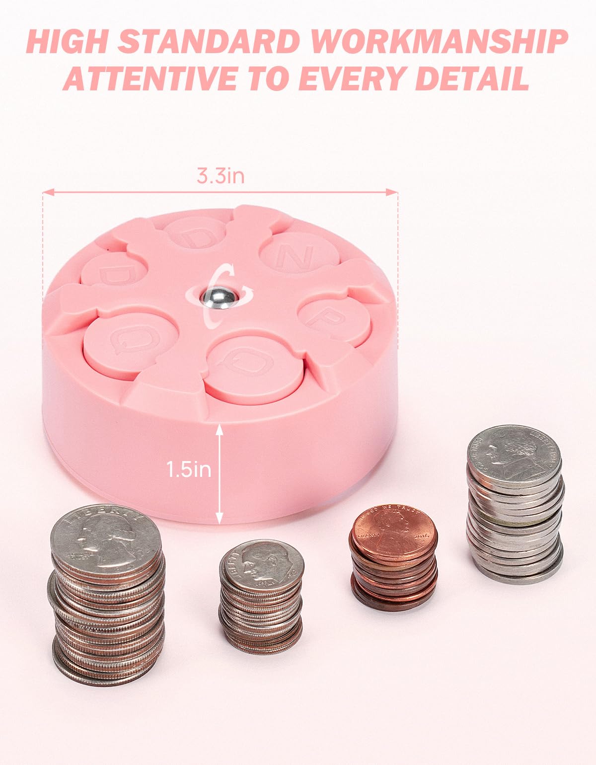 Large Capacity: Our coin holder is designed specifically for American coins with 6 slots, including 2 for Quarters, 2 for Dimes, 1 for Nickels, and 1 for Pennies. It can hold up to 14 Quarters, 13 Nickels, 17 Pennies, and 17 Dimes, making it perfect for your everyday needs