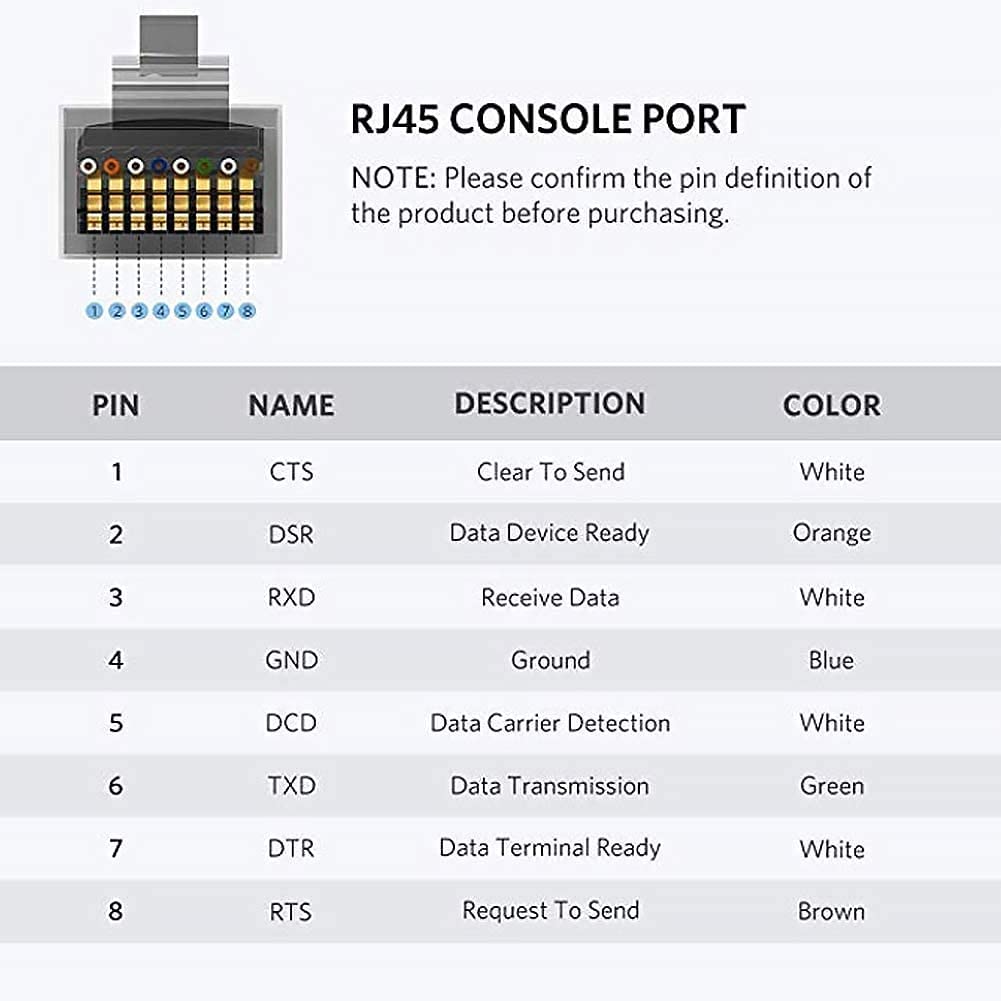 A practical serial cable to pair with branded Router, Switch, Firewall, Wireless LAN controller and other devices with console port, such as Cisco, Ubiquiti, Ubiquiti, Juniper, Fortigate, Mikrotik, ProCurve. Powered by USB port, no external power adapter required