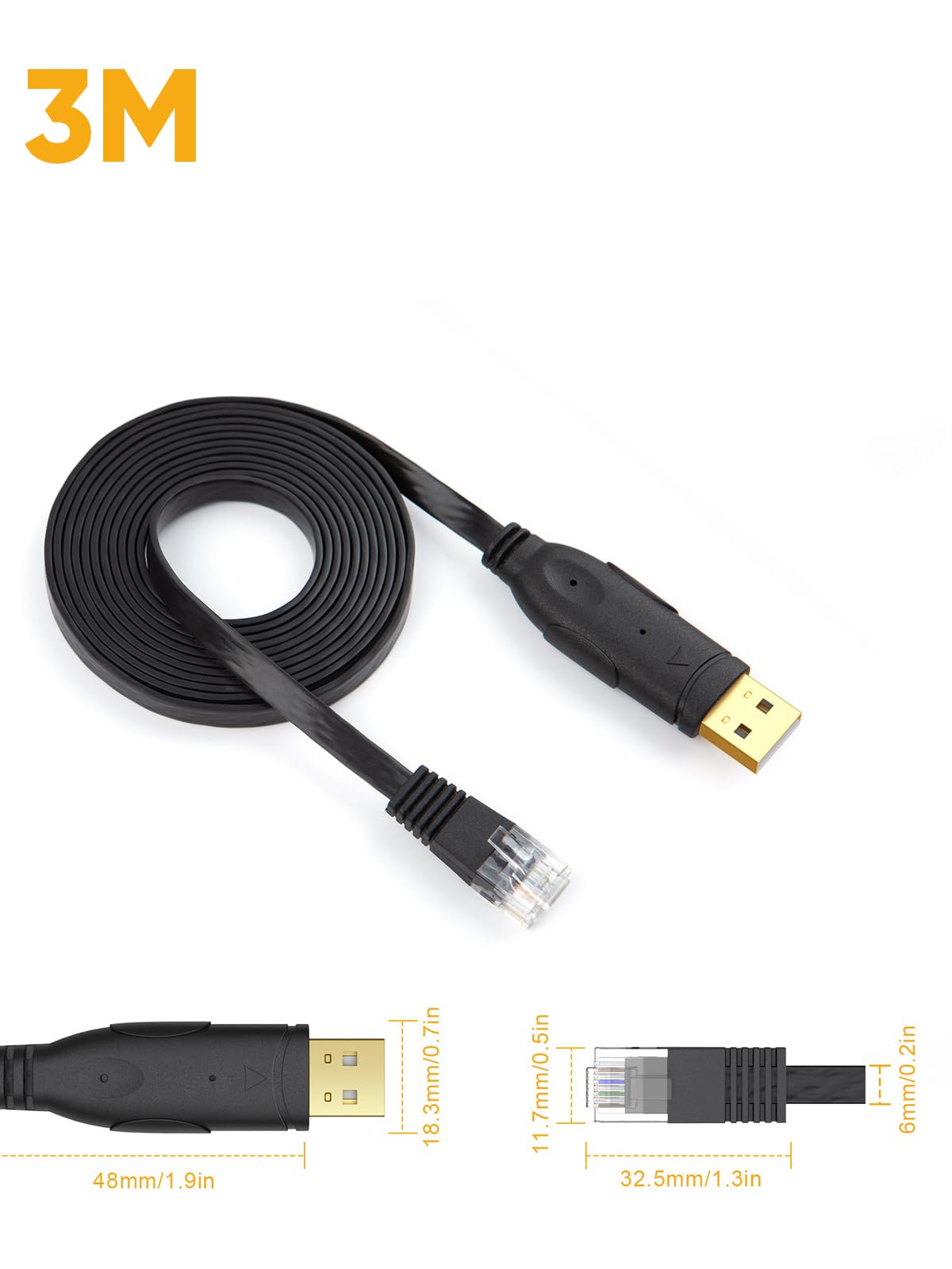 CableCreation USB Console Cable 10FT USB to RJ45 Serial Adapter Compatible with Router / Switch of Cisco, NETGEAR, Windows, Linux System, Black 3M