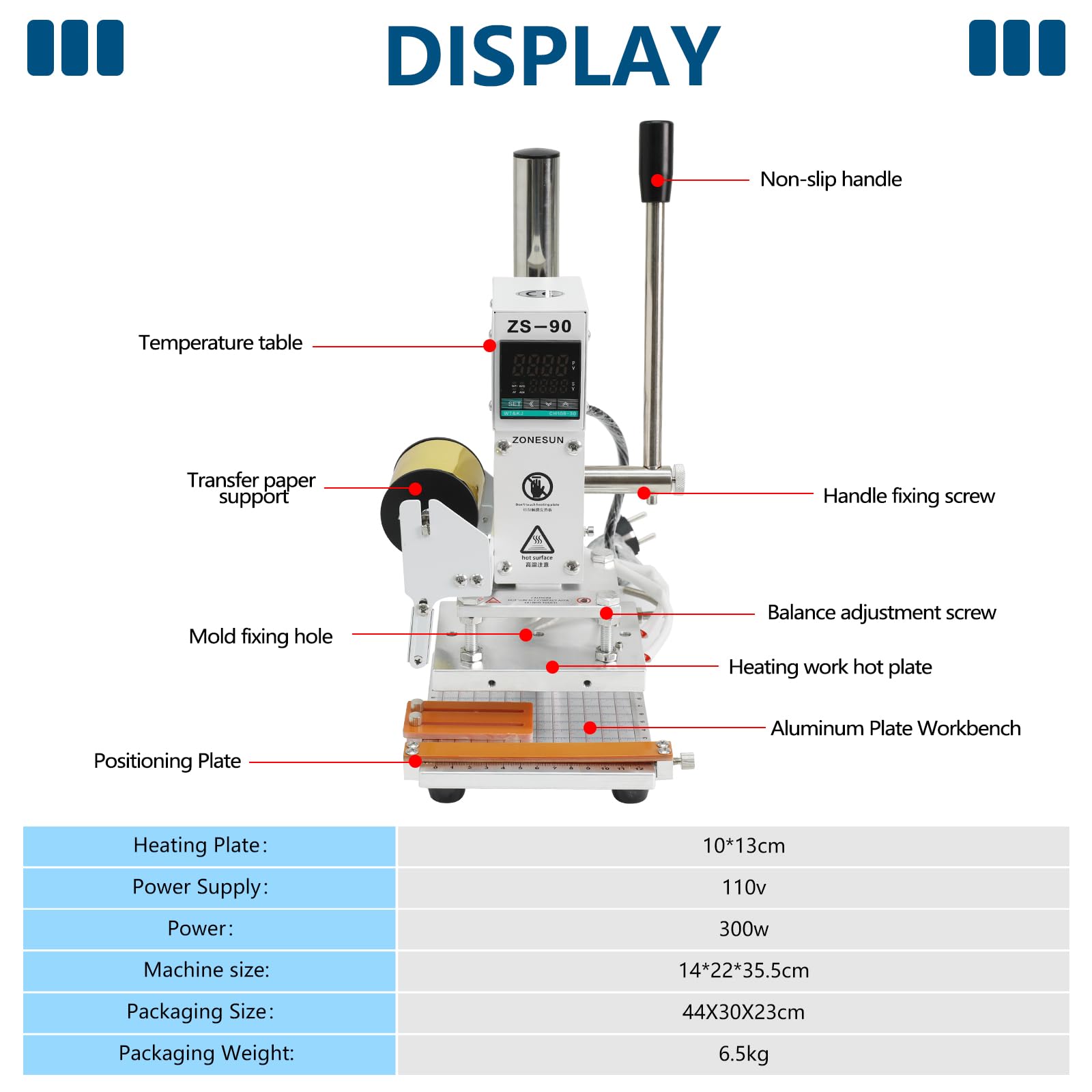 Easy to Operate:Digital display accurately control the temperature,Temperature range:0-350 ℃; machine is easy to set up and easy to use. Stamping area 10*13 cm. Come with 1 roll gold foil paper and 1 roll silver paper with the machine
