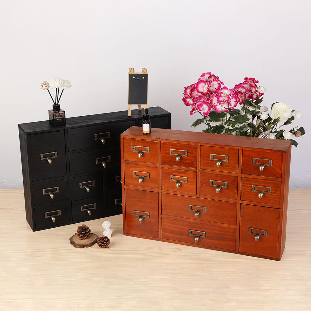 👜 [ PACKAGE ] 👜 A wooden apothecary supplies chest with 12 drawers. All drawers have handles and perfect size labels.