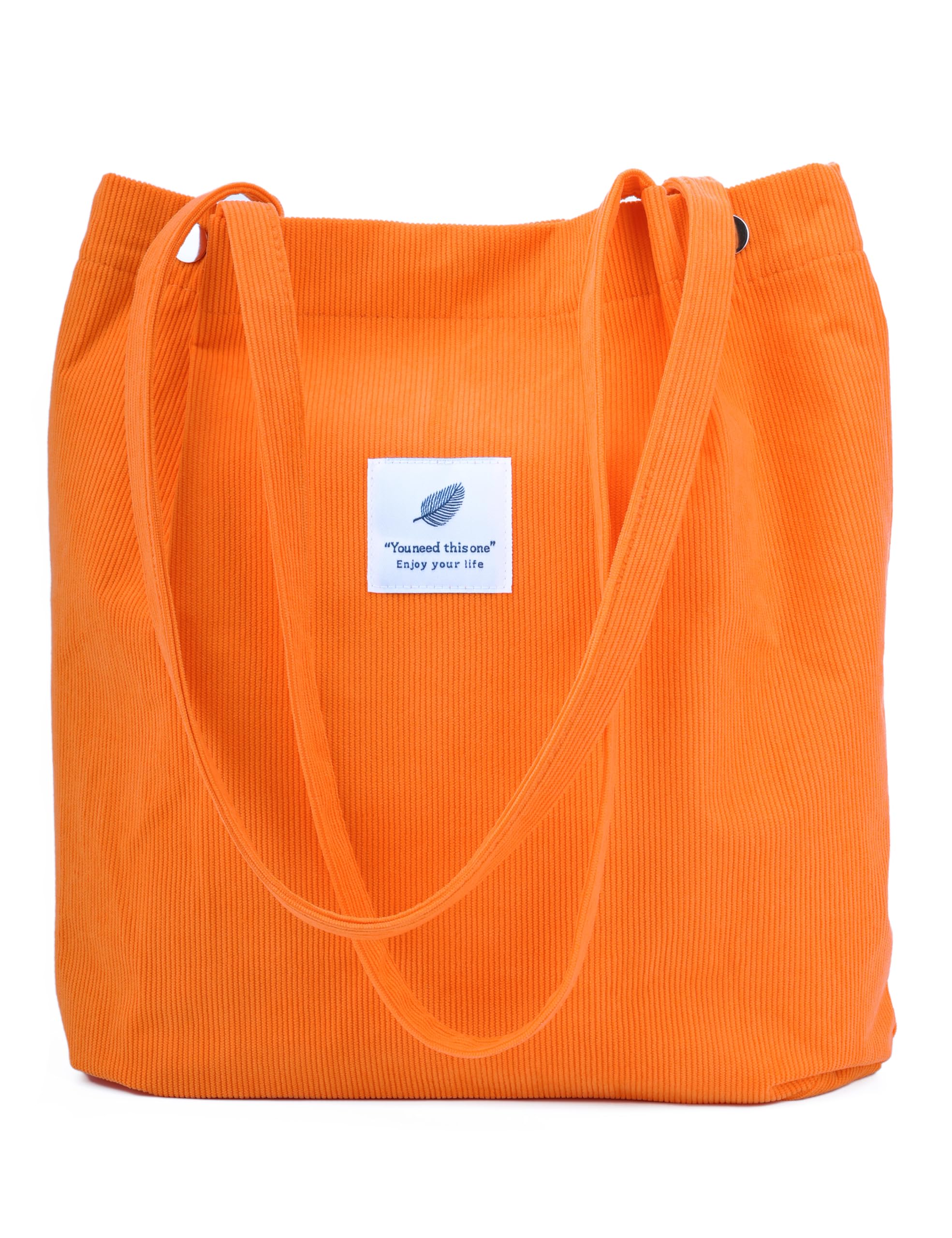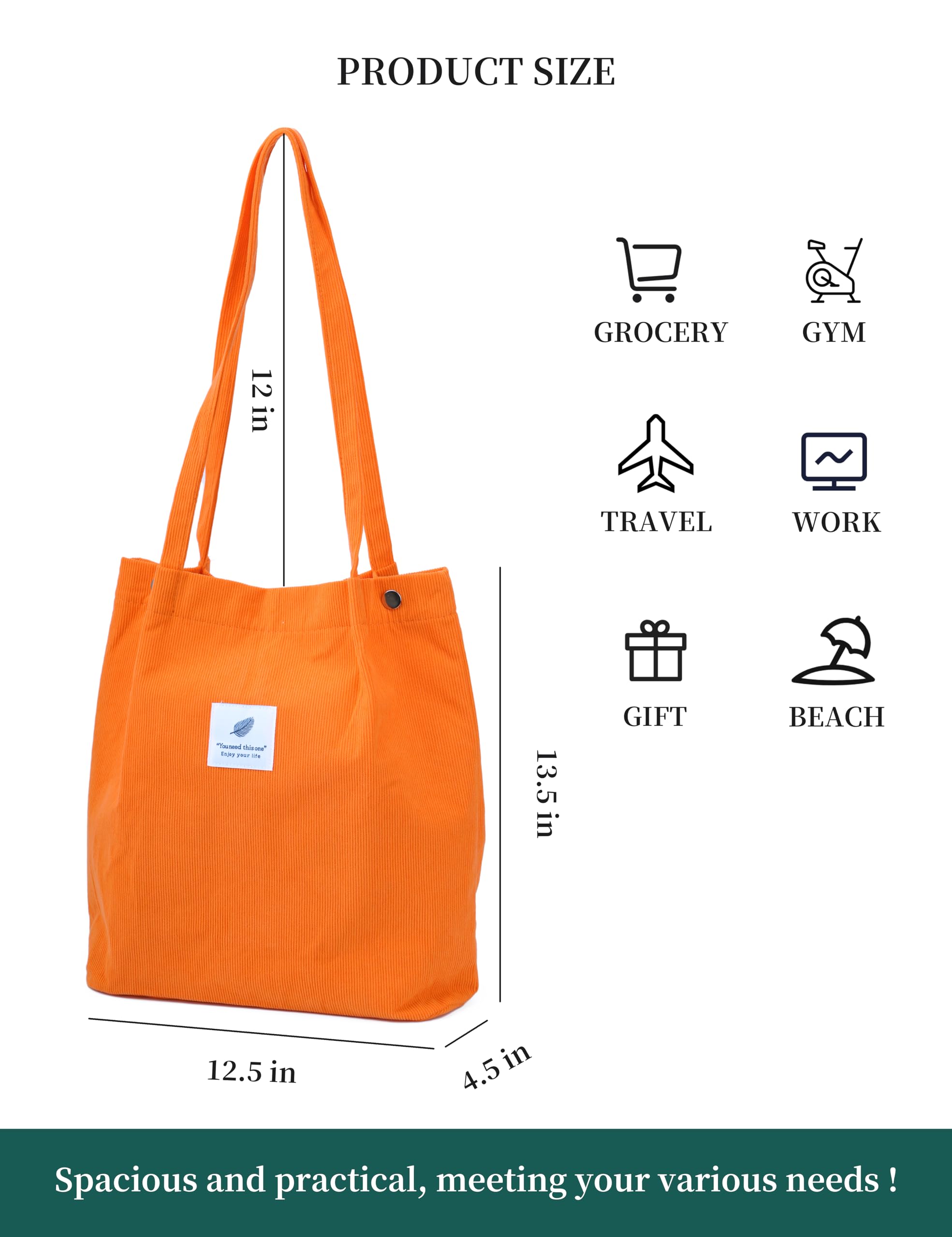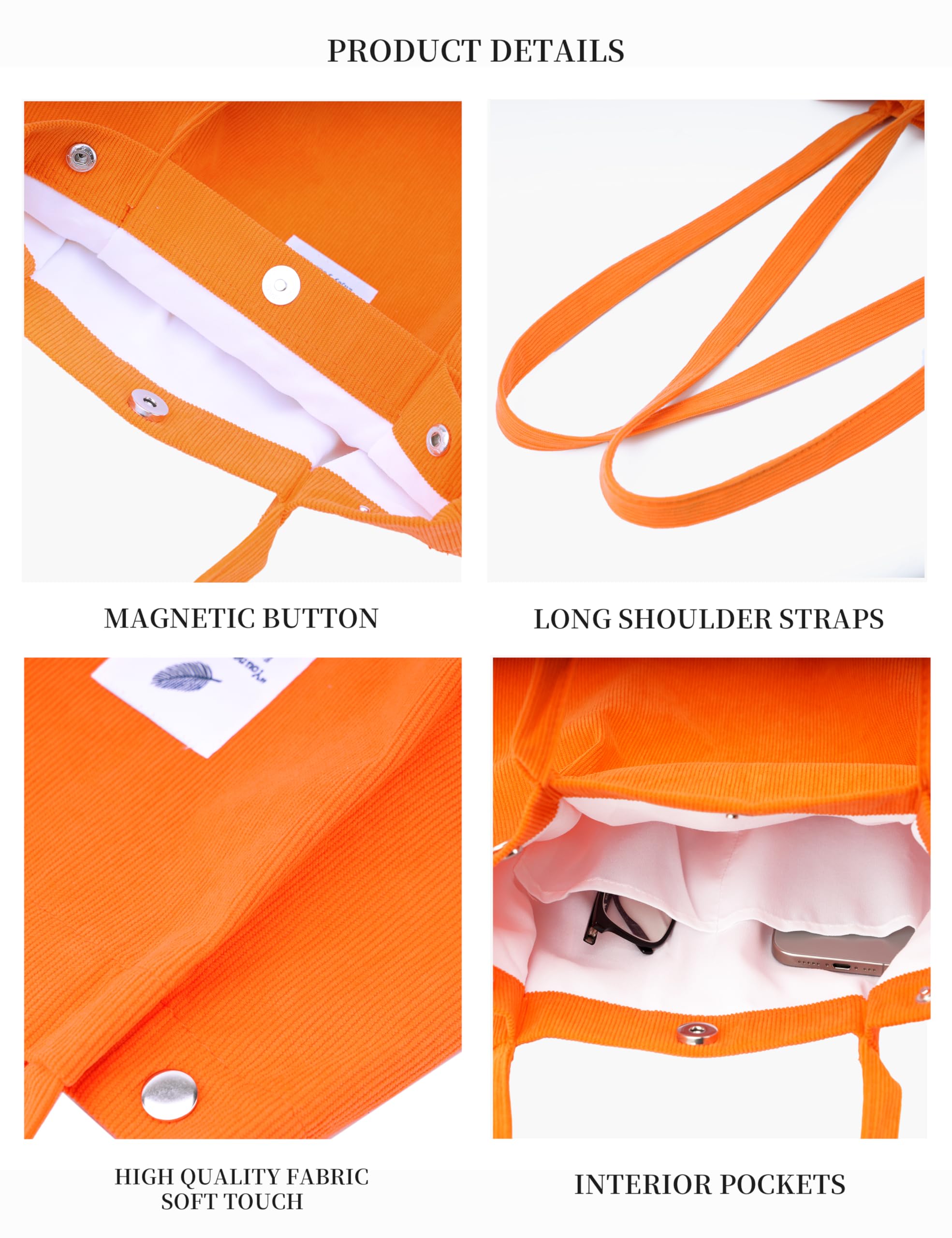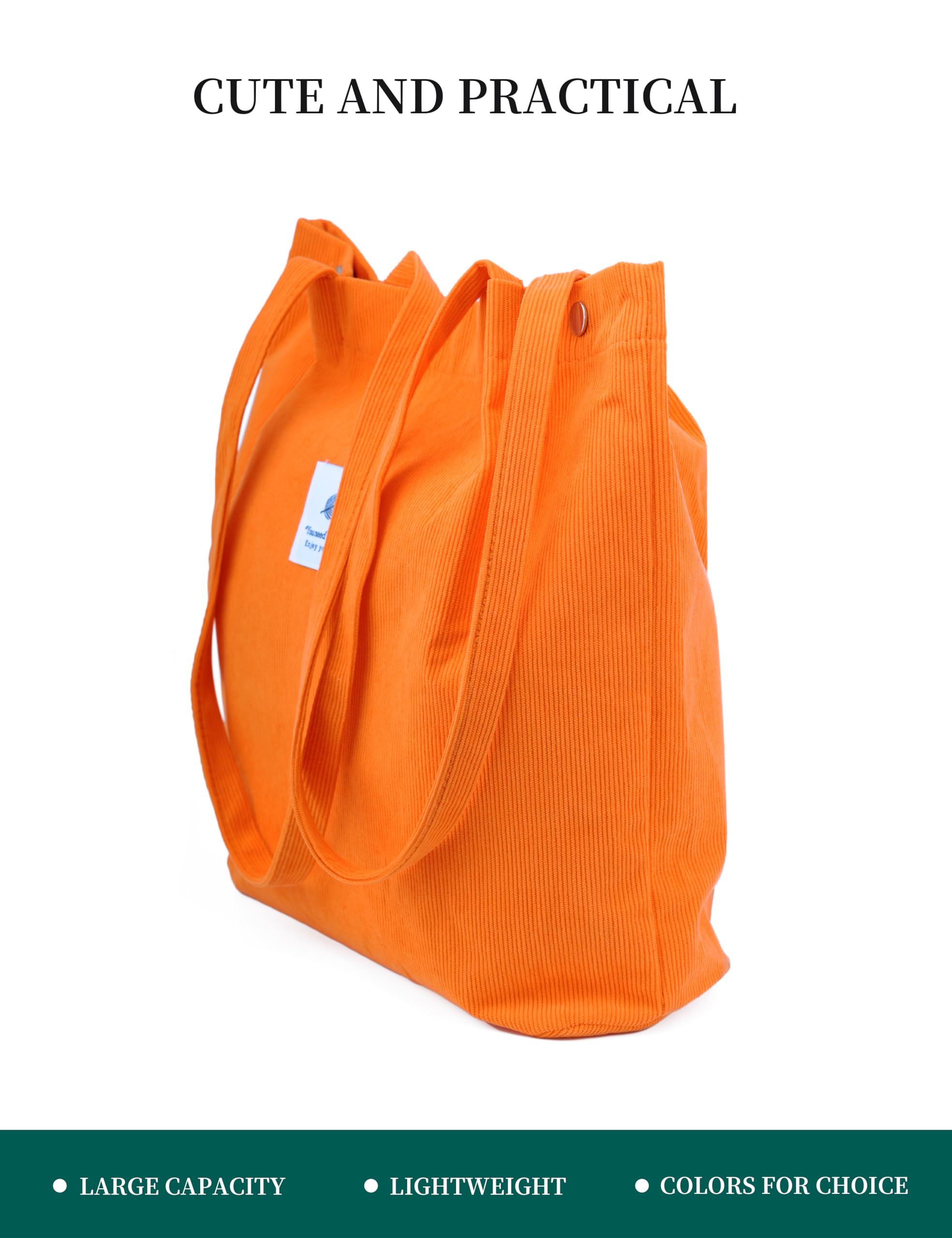 HIGH QUALITY: The tote bag is made of sturdy corduroy fabric, soft and warm to the touch, with reinforced shoulder straps, very strong and durable, smooth lining, very easy to clean and can be used repeatedly for a long time.