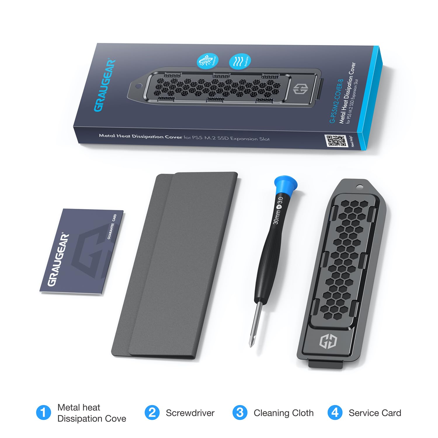 【Package Contents】GRAUGEAR PS5 M.2 SSD cover, screwdriver, cleaning cloth, warranty card and friendly customer service.