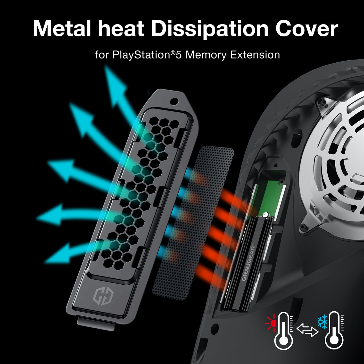 【New Breathable Hole Design】With the hollow cellular hole, increase the heat dissipation area and absorb the heat generated by the M.2 SSD. Enhances the temperature conversion effect together with the PS5 internal cooling fan.