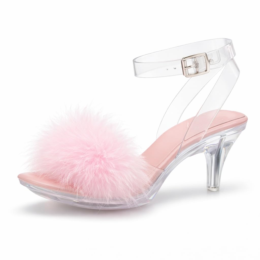 High Heels Sandals:Sexy Stilettos heels,Perfect heel height that looks sexy but still definitely comfortable to stand and walk in.TPU transparent upper,fluffy feather clear sandals sexy and cute,the candy colors adds a style and makes you look unique