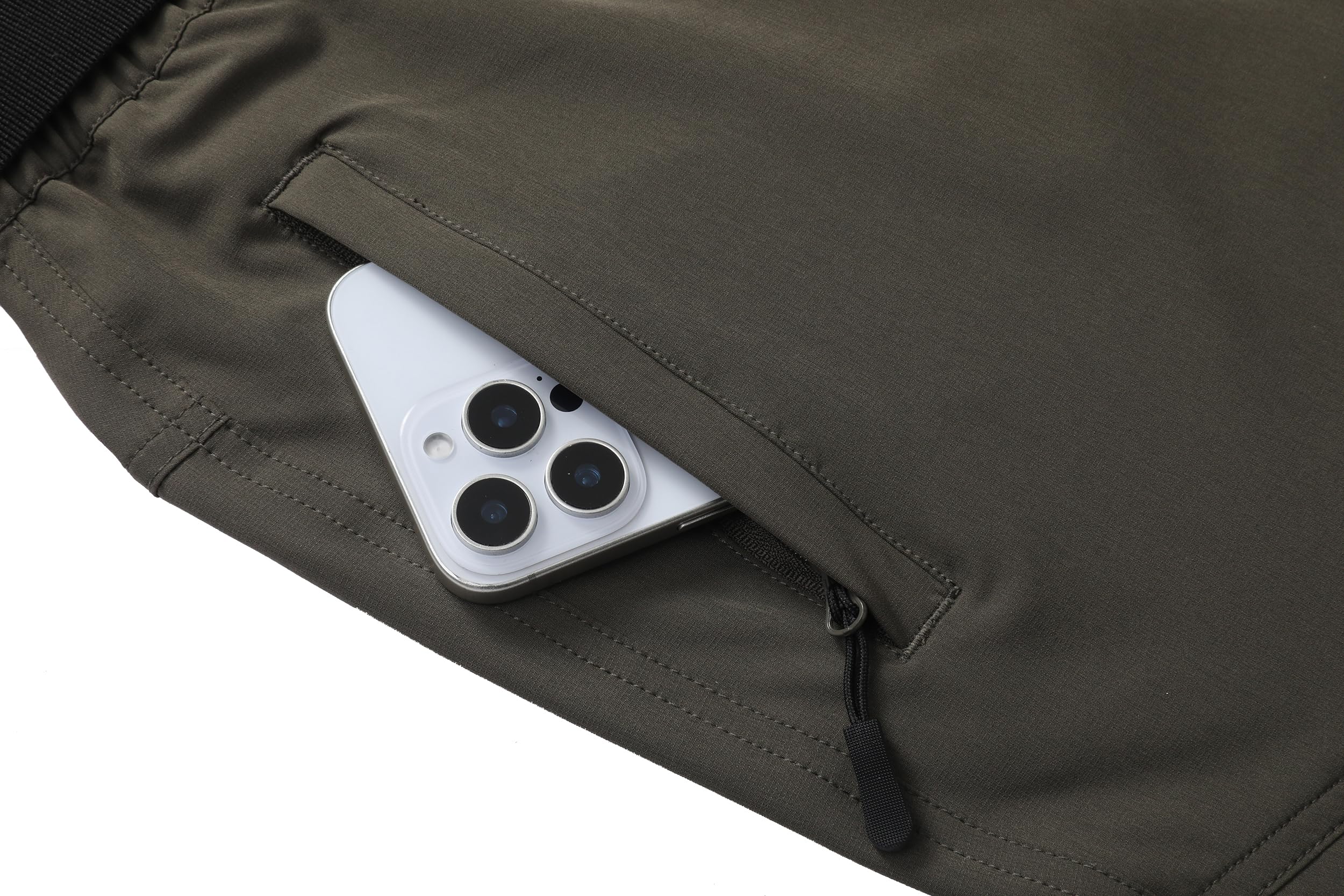 The quick-drying pants are made of 95% polyester and 5% spandex, with good air permeability and moisture absorption and perspiration, can keep dry and comfortable