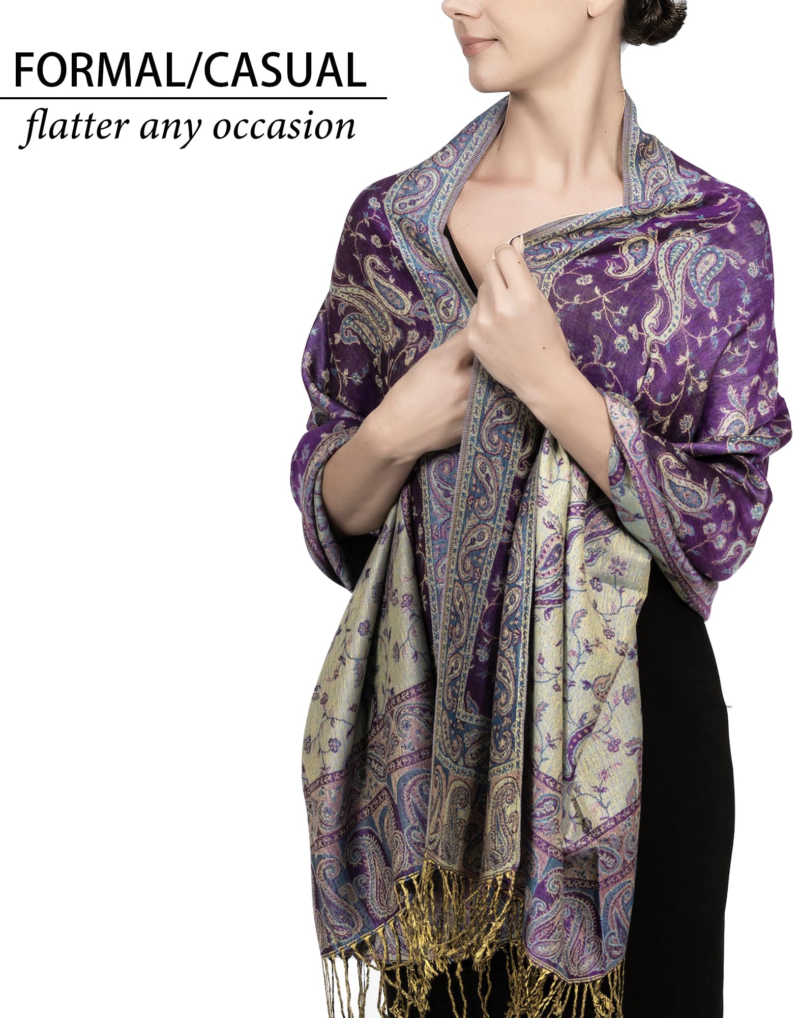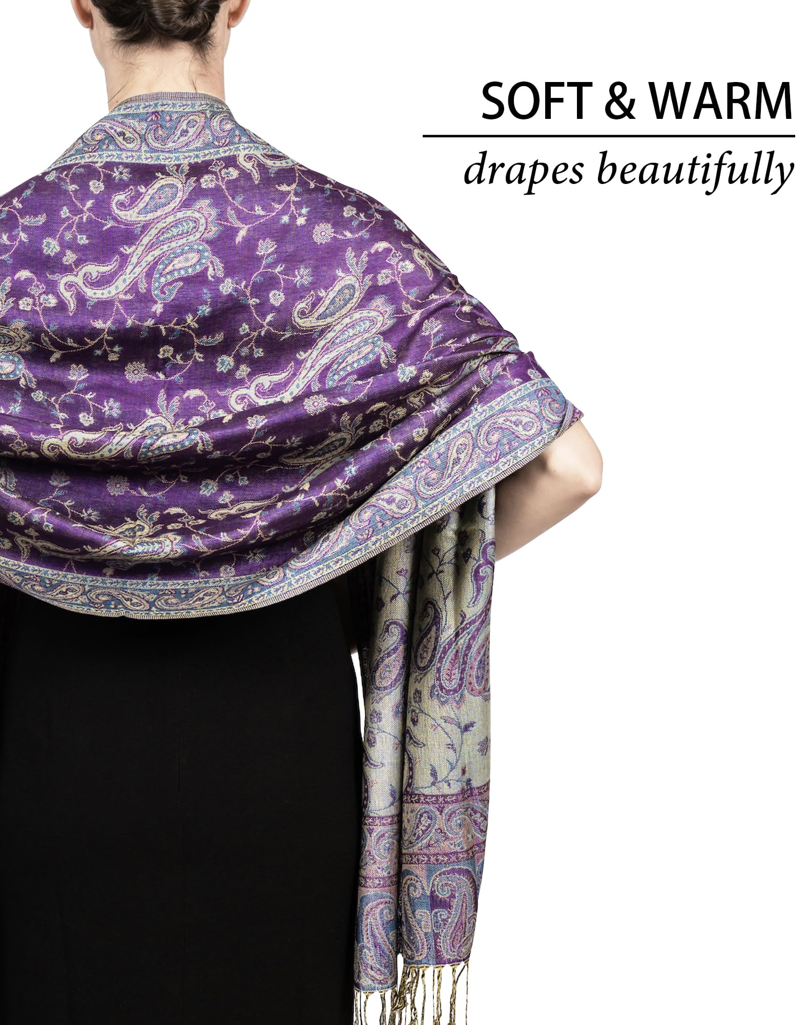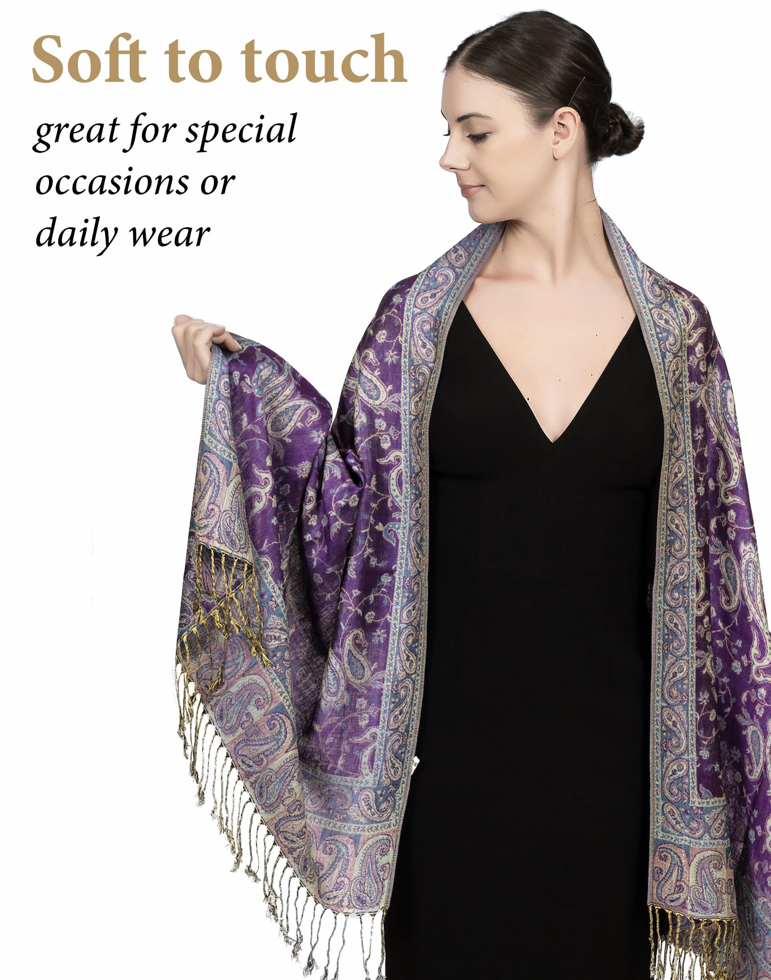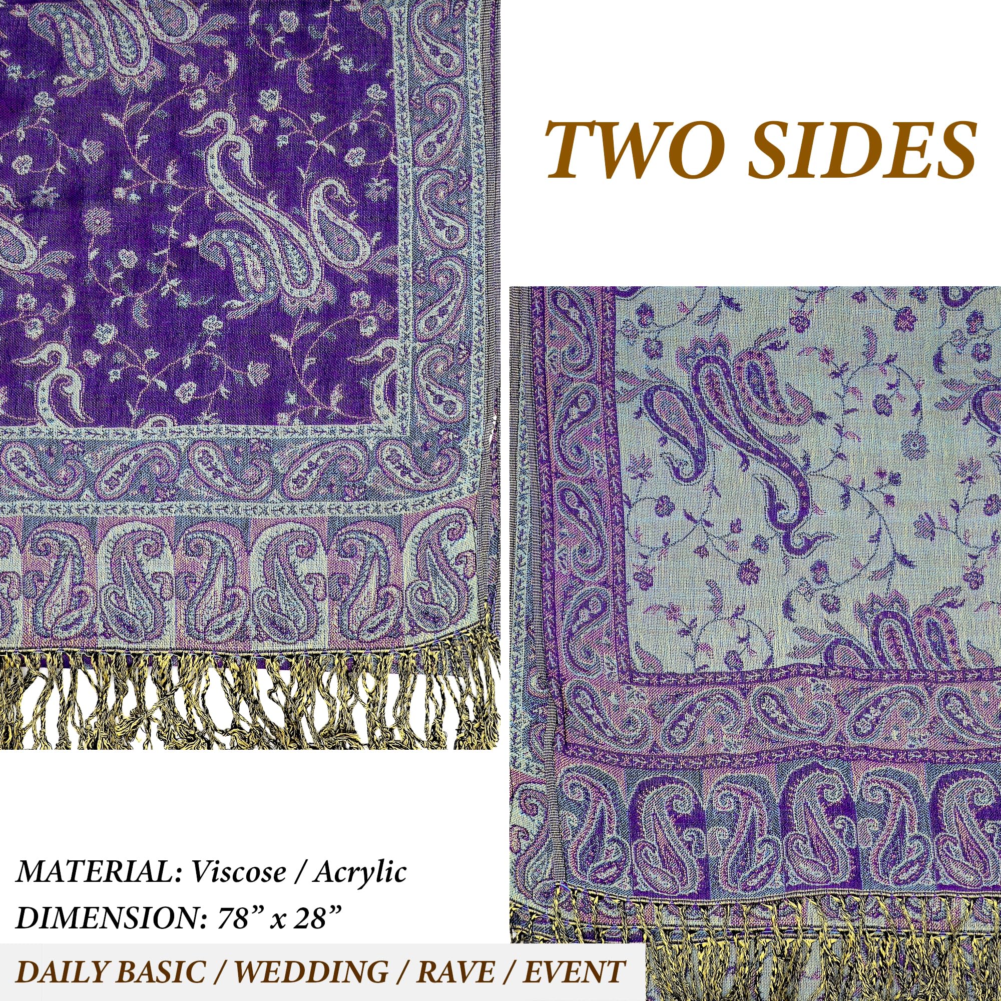 ✔️ Exotic Tapestry Look with Reversible Design – This reversible paisley shawl wrap for women features two beautiful color tones in one piece. It complements everything from evening gowns to rave outfits for men and women, offering vibrant style with graceful comfort.
