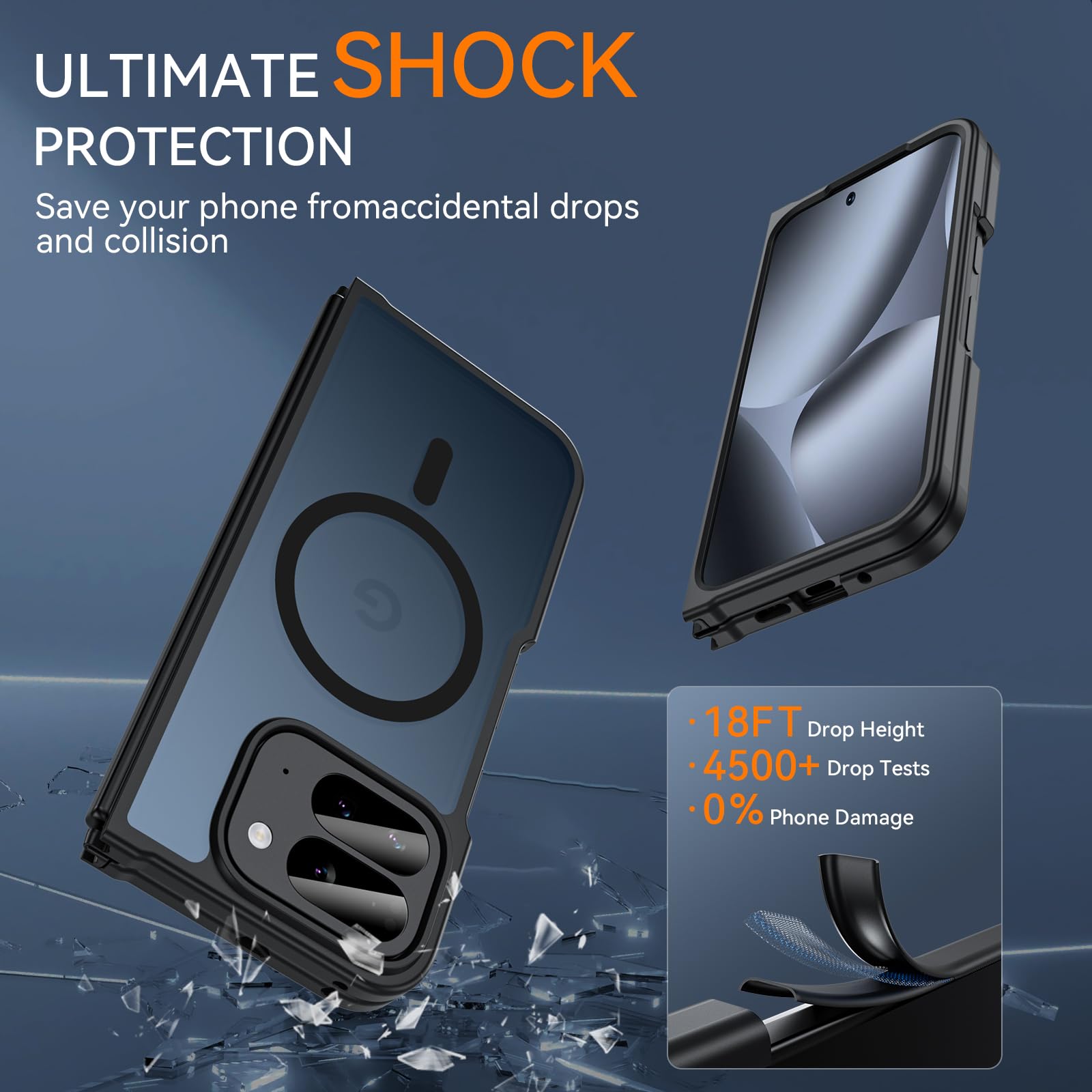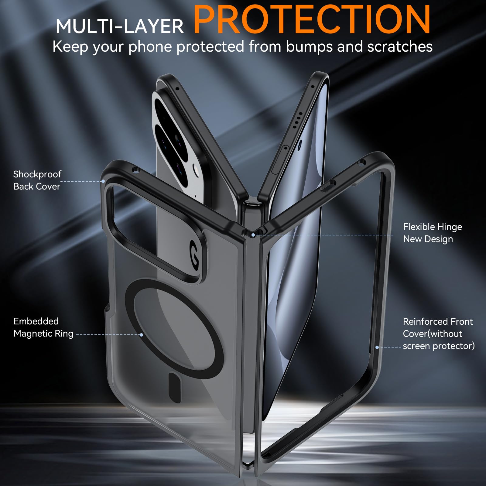 【Designed for Folding, Precise Opening and Closing Protection】This phone case is specially designed for the folding form of Google Pixel 10 Pro Fold, accurately covering the front and rear screens and hinges. It adopts a split or enhanced shaft protection structure to provide a smooth and unimpeded experience when opening and closing, while effectively dispersing the impact force and protecting the delicate hinges and screen edges from bumps and damage.