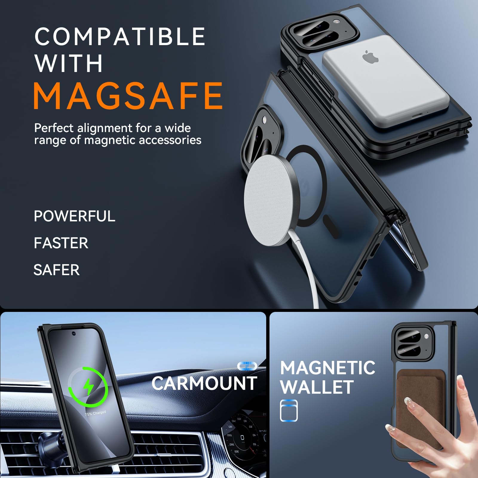 【Strong Magnetic Attraction, Convenient Wireless Charging】This pixel fold 10 pro case uses an upgraded version of the precision integrated strong magnetic ring array, which is perfectly compatible with the MagSafe magnetic attraction ecosystem. Easily adsorb magnetic chargers, card holders, brackets and other accessories to achieve efficient wireless charging, stable support and multi-scene expansion functions without repeatedly removing the phone case.