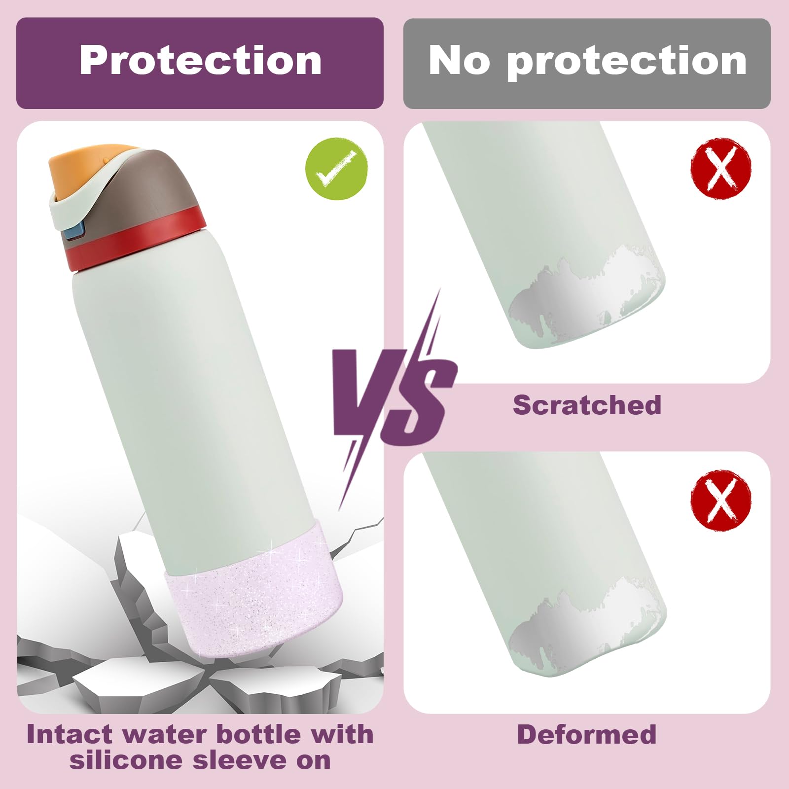 Better Protection: Avoid unwanted scratches, dings, or dents with this extra layer of protection during outdoor adventures, extend the life of your bottle. It can reduce noise during indoor and office when you put the bottle on the dest.