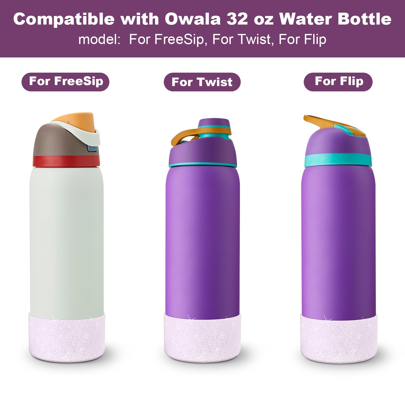 Compatible: Silicone water bottle boot sleeve Compatible with Owala 32 oz FreeSip/Twist/Flip stainless steel water bottles.
