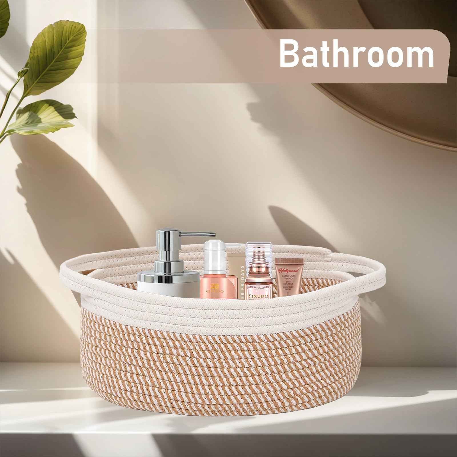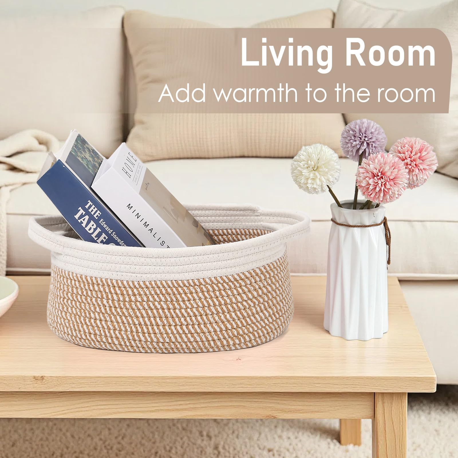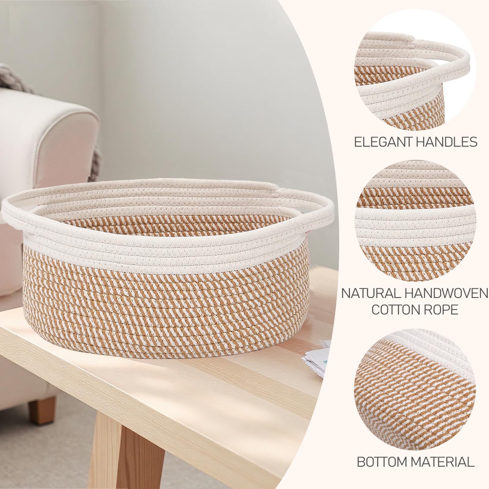 Handmade Woven Basket---Made from natural materials, this woven baskets for storage option is safe for kids and pets. Crafted by skilled artisans, each cotton rope basket is unique in texture and quality.