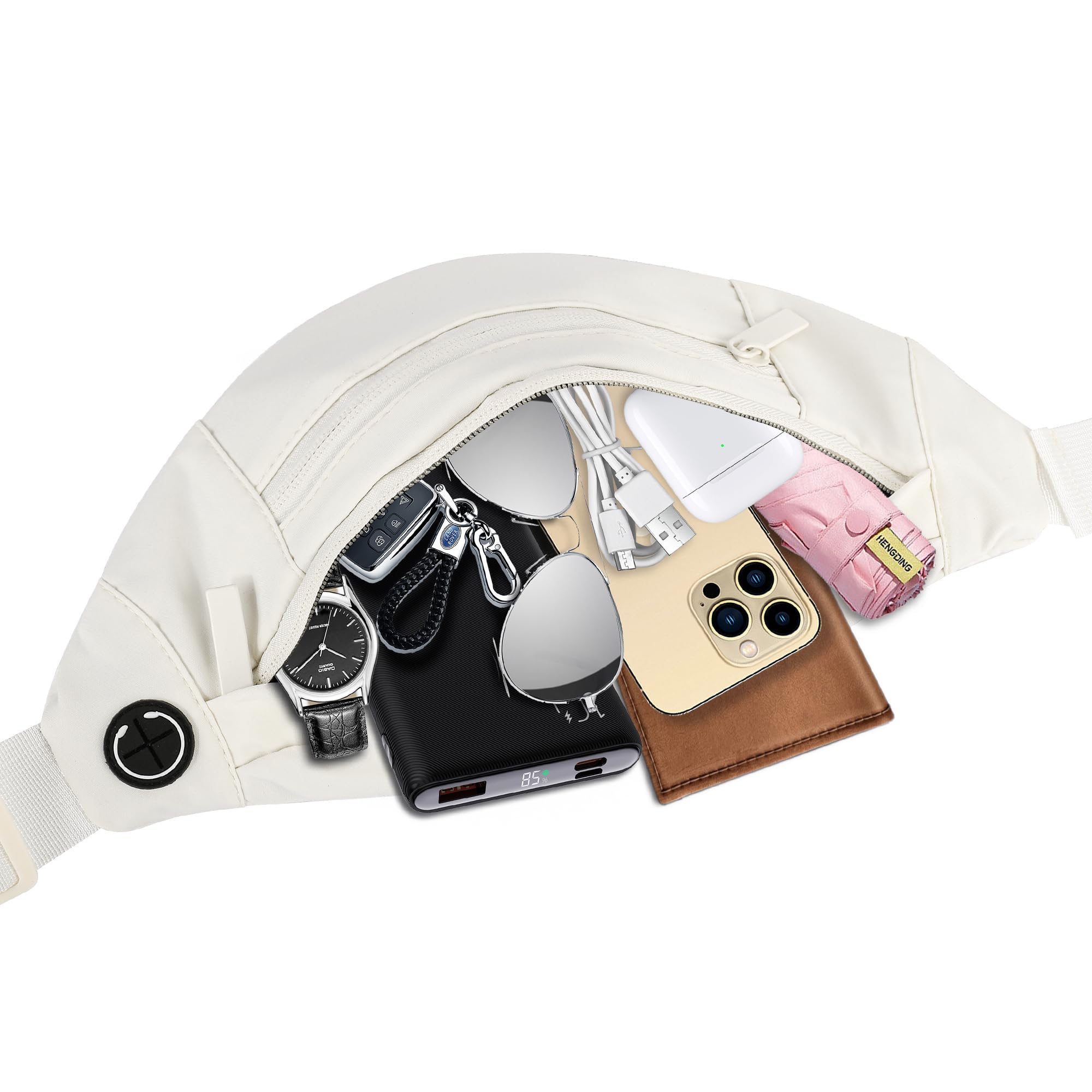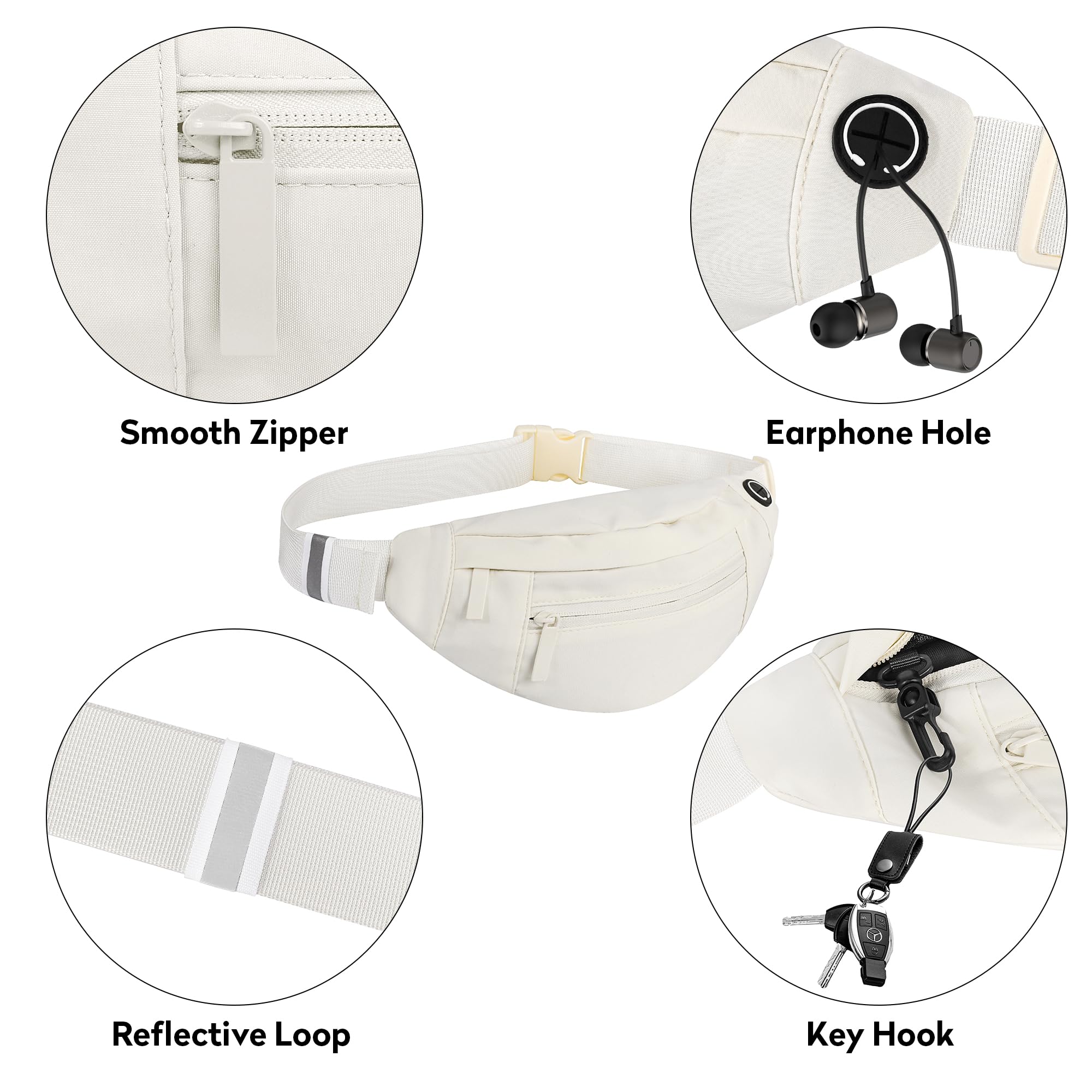Headphone Hole and Key Fob Hook Design:This waist pack provide a Headphone Hole and Key Fob Hook that you can find the key easily. Free your hands to enjoy music while you exercise